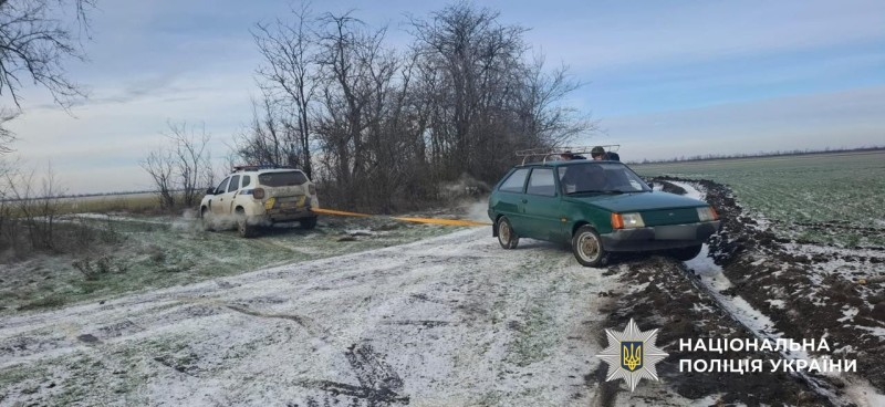 Поліцейські Херсонщини допомагають водіям, які потрапили в скрутне становище через негоду