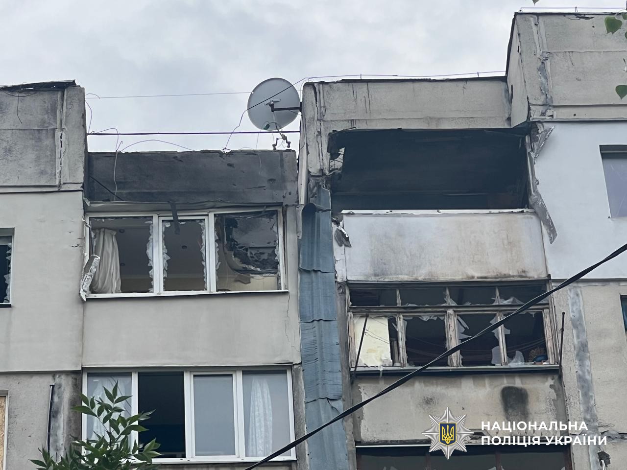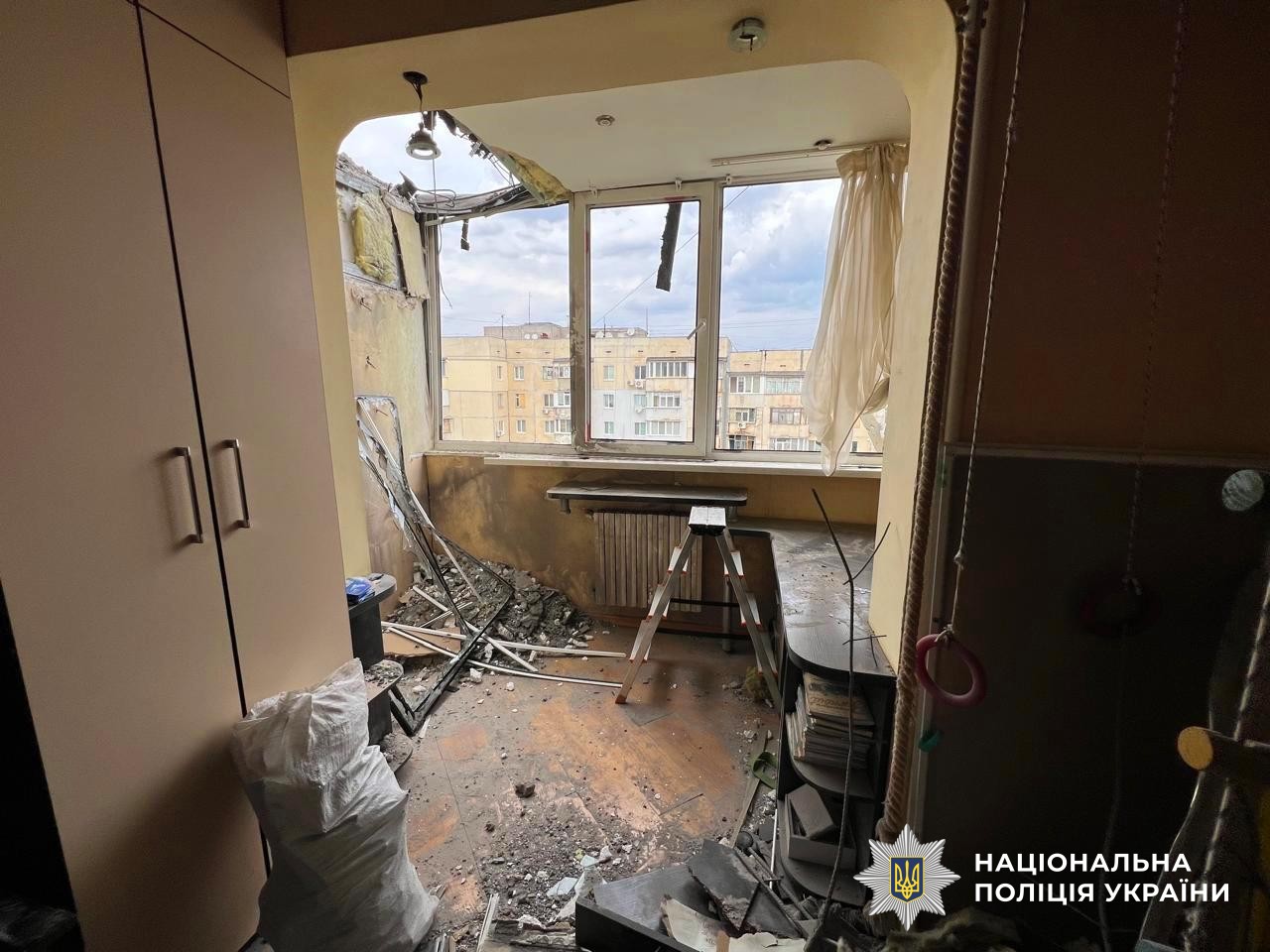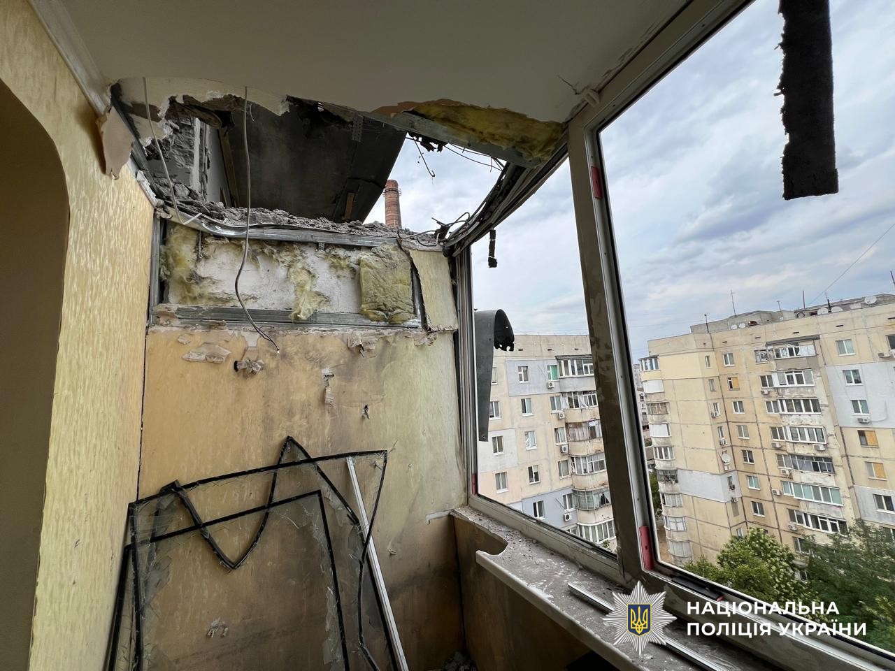 Дроном типу «FPV» росіяни вдарили по п’ятиповерховому будинку в Бериславі, який був неодноразово пошкоджений внаслідок попередніх обстрілів.