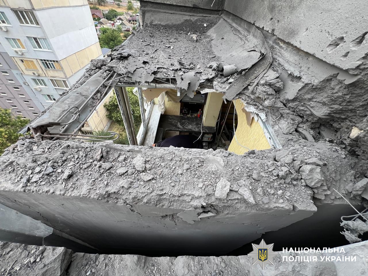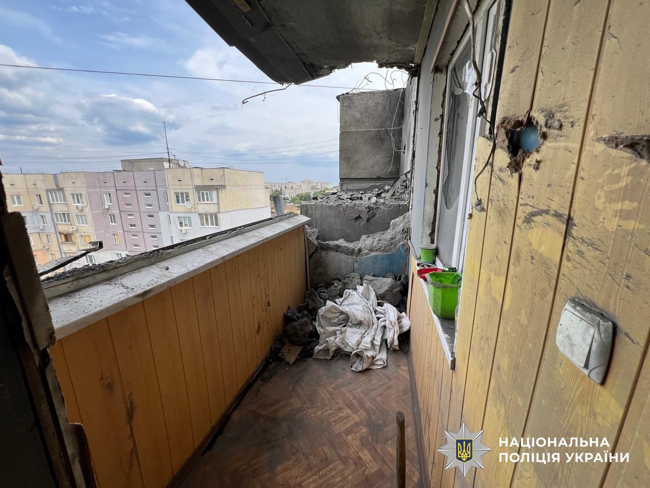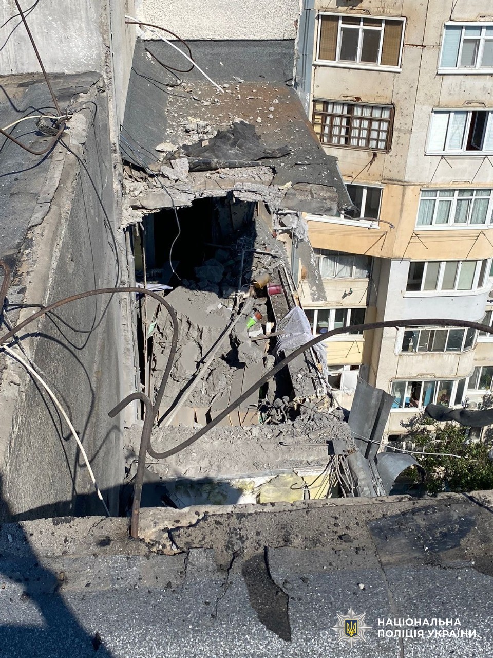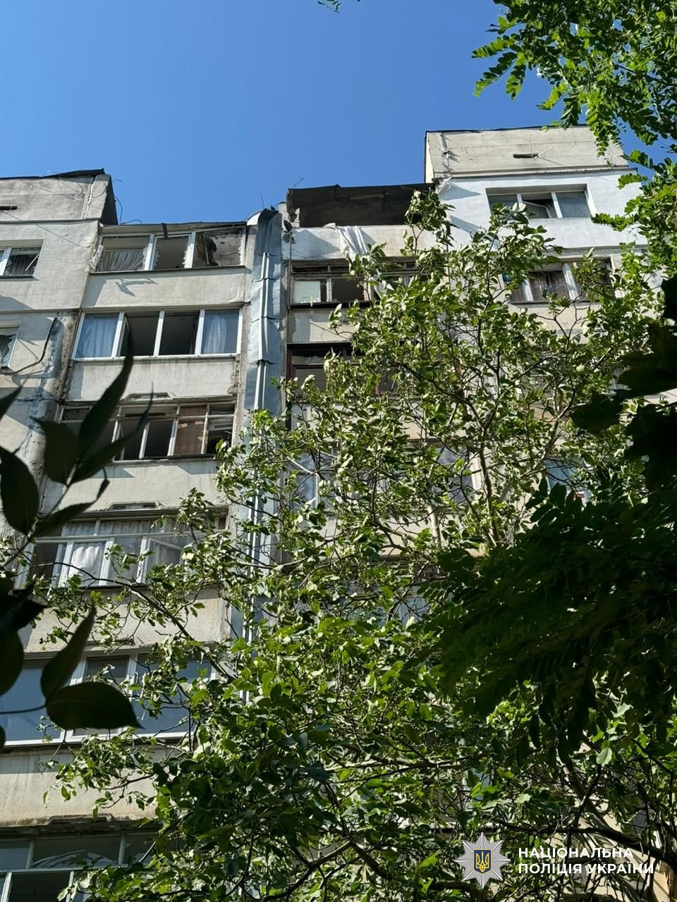 Дроном типу «FPV» росіяни вдарили по п’ятиповерховому будинку в Бериславі, який був неодноразово пошкоджений внаслідок попередніх обстрілів.