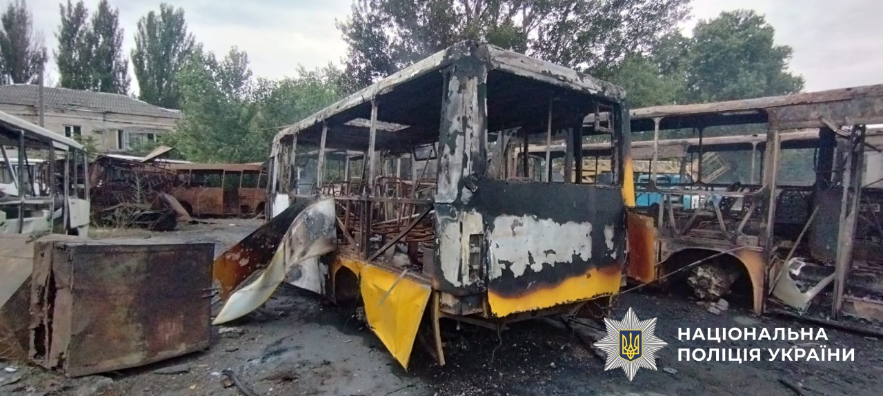 Цієї ночі в результаті падіння уламків збитих БпЛА типу «Shahed» виникла пожежа на території міського комунального підприємства, вогнем знищено 15 одиниць транспорту та пошкоджено ще п’ять. Також пошкоджено автомийку в Центральному районі Херсона. Наслідки атаки уточнюються.