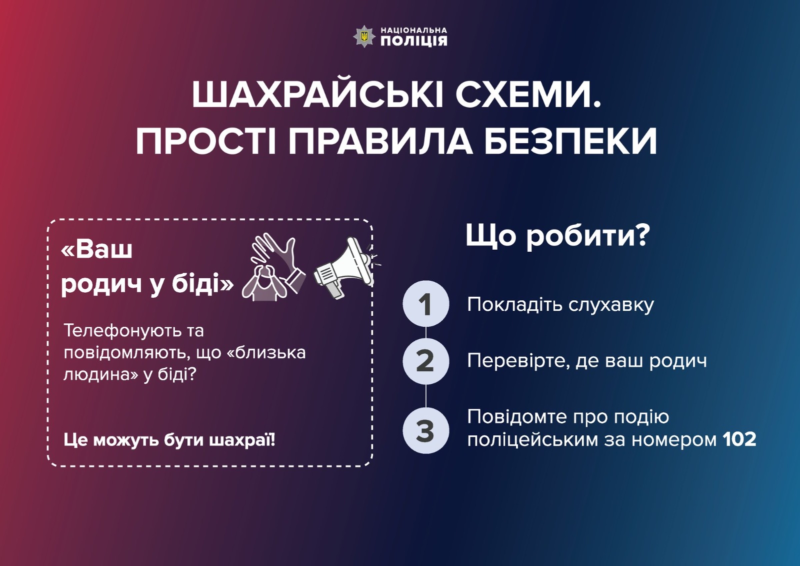 Шановні громадяни! Аби убезпечити себе від подібних випадків, під час спілкування у месенджерах не переходьте за невідомими посиланнями. Беріть інформацію щодо фінансових виплат лише з офіційних джерел. Коли заповнюєте платіжні форми або спілкуєтесь з банківськими працівниками, в жодному разі не розголошуйте конфіденційні дані своєї банківської картки: термін дії, PIN-код та CVV-код.