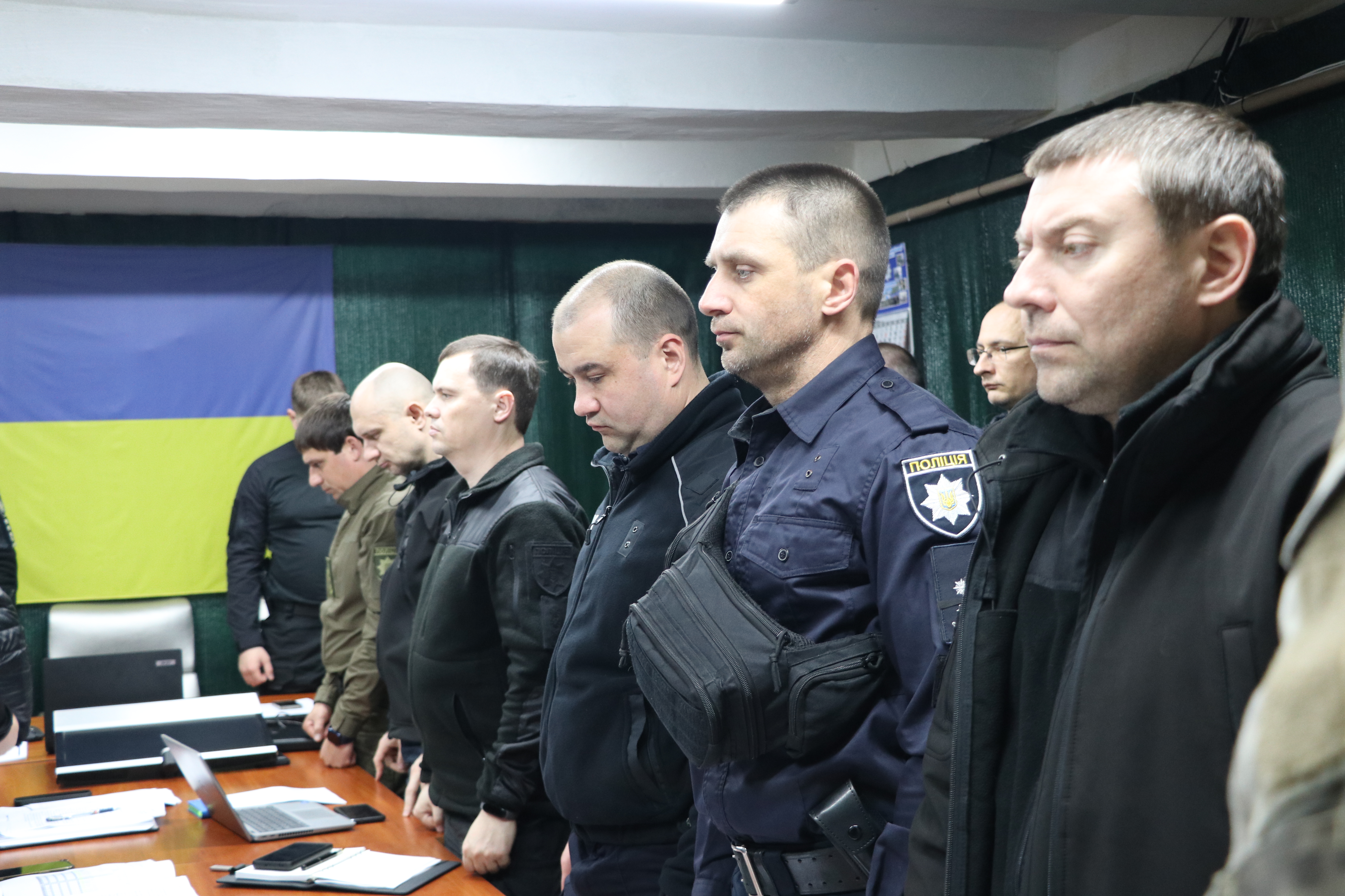 Керівництво Головного управління Національної поліції в Херсонській області, начальники галузевих служб і територіальних підрозділів під час робочої наради хвилиною мовчання вшанували пам'ять загиблих колег, які віддали своє життя за незалежність та територіальну цілісність України у протистоянні з військовою агресією рф.