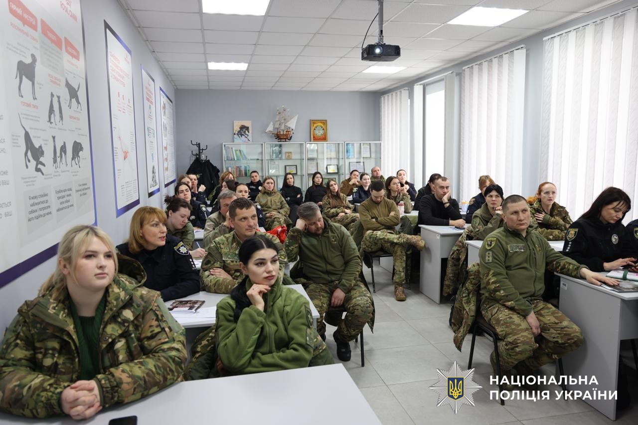 Під час інтенсиву правоохоронці поглиблювали знання щодо надання психологічної допомоги пораненим, ветеранам, членам їхніх родин та цивільним, які постраждали внаслідок війни. Психологи та кінологи працювали в командах, відпрацьовуючи методики, в яких службові собаки допомагають знижувати рівень тривожності, стабілізувати емоційний стан і сприяти відновленню внутрішньої рівноваги.