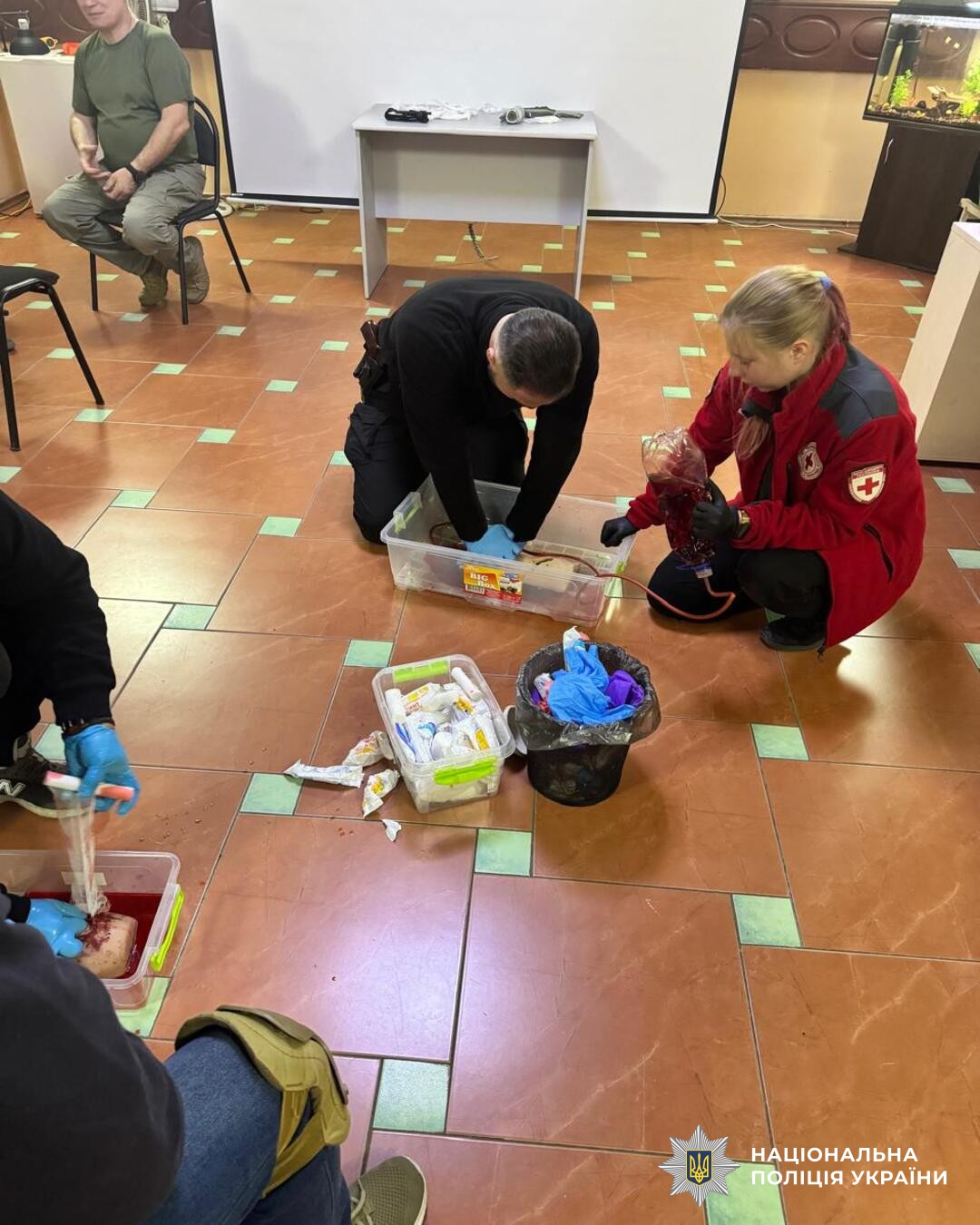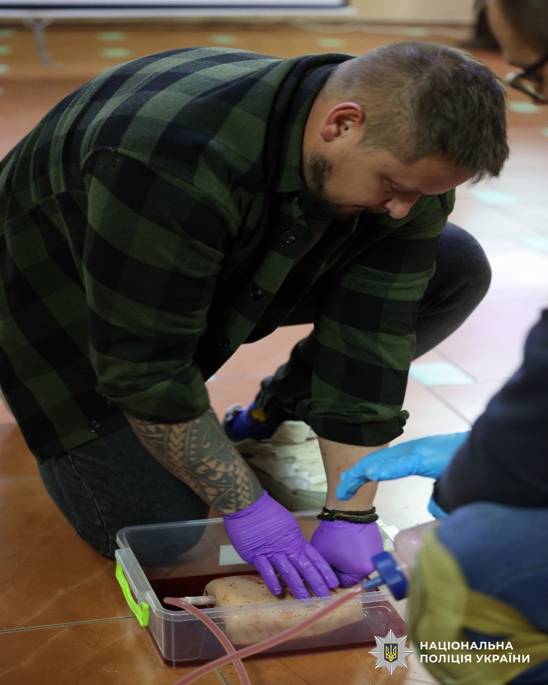 Під час тренінгу співробітники поліції покращили свої знання та навички з надання домедичної допомоги. Зокрема, правоохоронці вчилися здійснювати серцево-легеневу реанімації, зупиняти різні види кровотеч, транспортувати потерпілих, а також правильно накладати турнікети, бандажі та пов’язки.