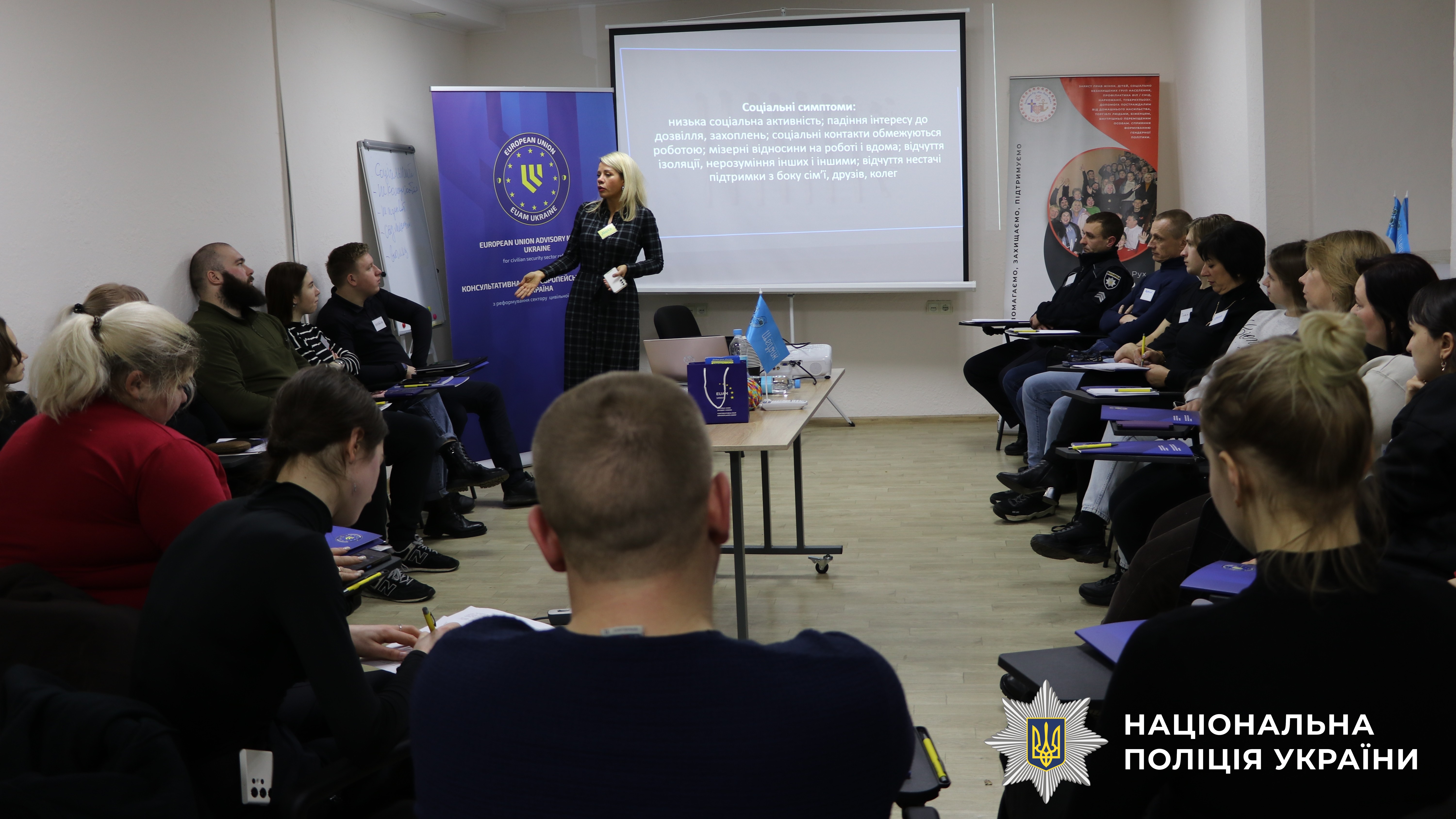 Представники Консультативної місії Європейського Союзу та громадського руху «Віра, Надія, Любов» провели для працівників поліції Херсонщини тренінг «Перемога над стресом».