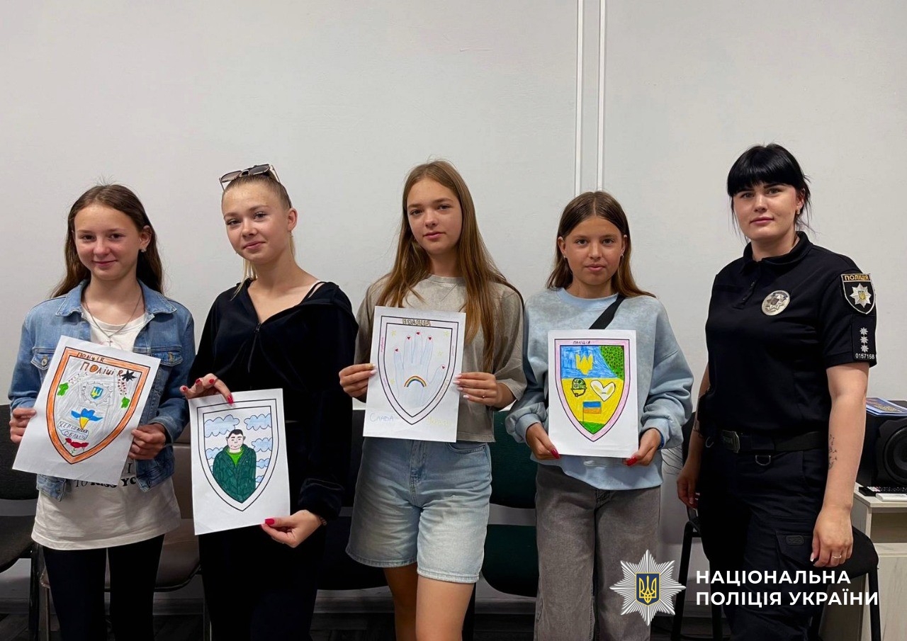 Тож аби формувати у дітей розуміння поліції як служби, яка захищає, підтримує і надихає, ювенали територіального підрозділу поліції Високопілля зустрілися з юними жителями громади і створили свої шеврони для участі в конкурсі.
