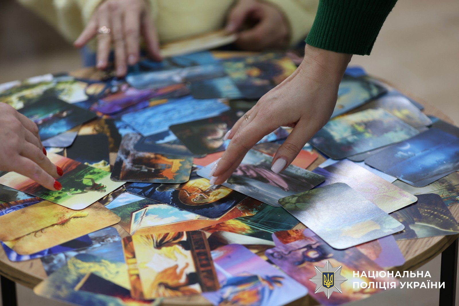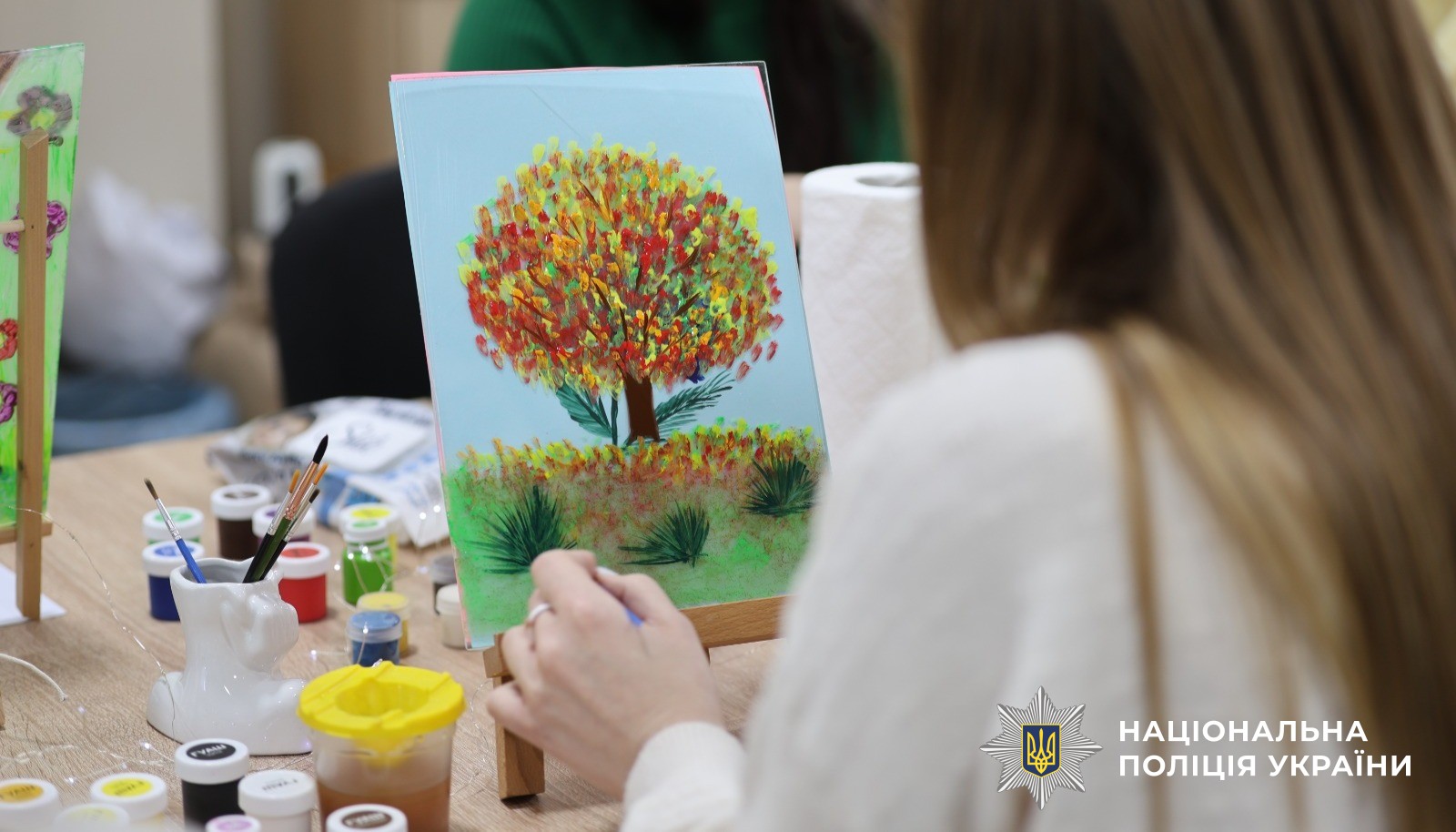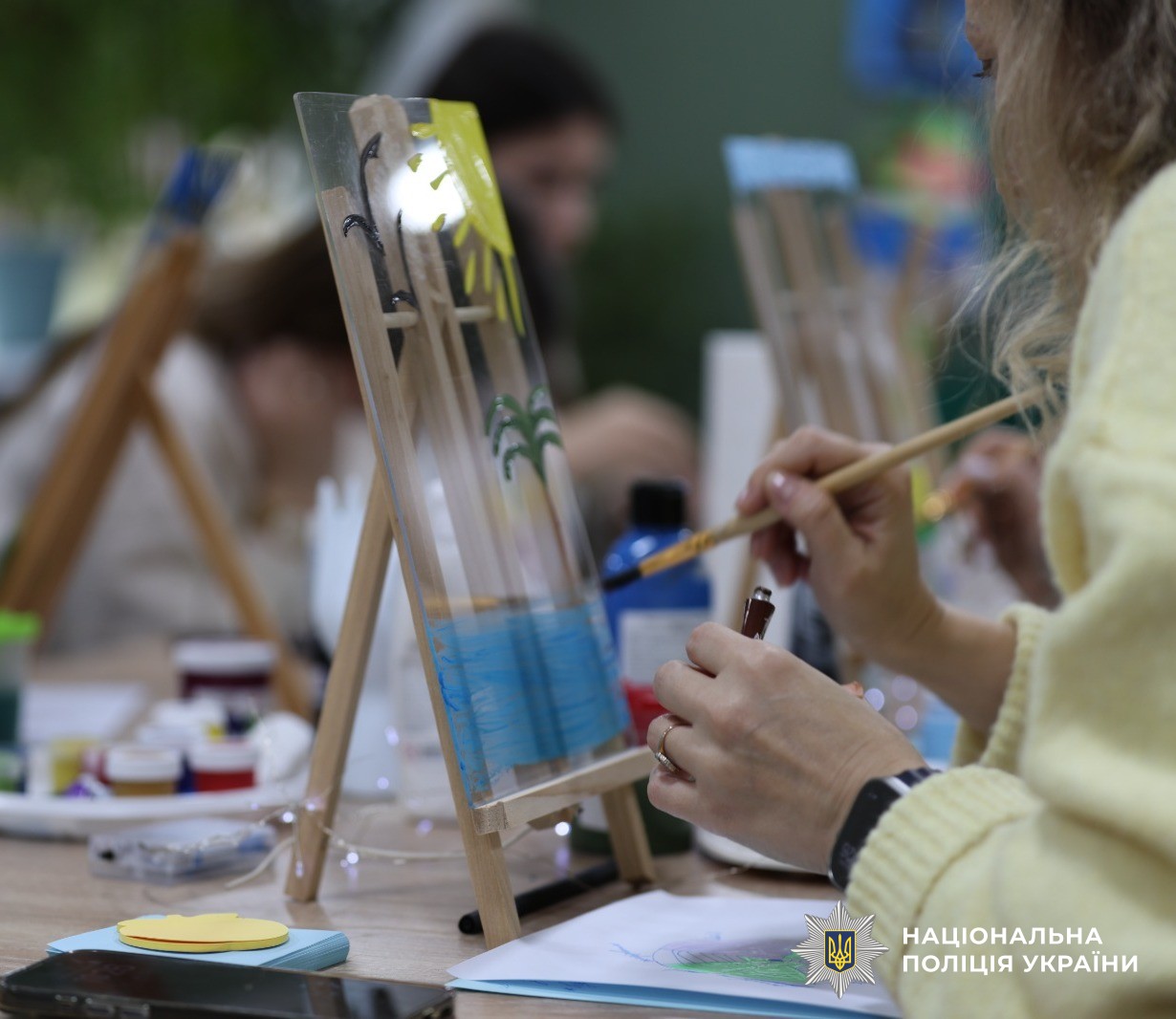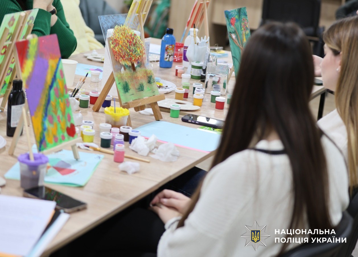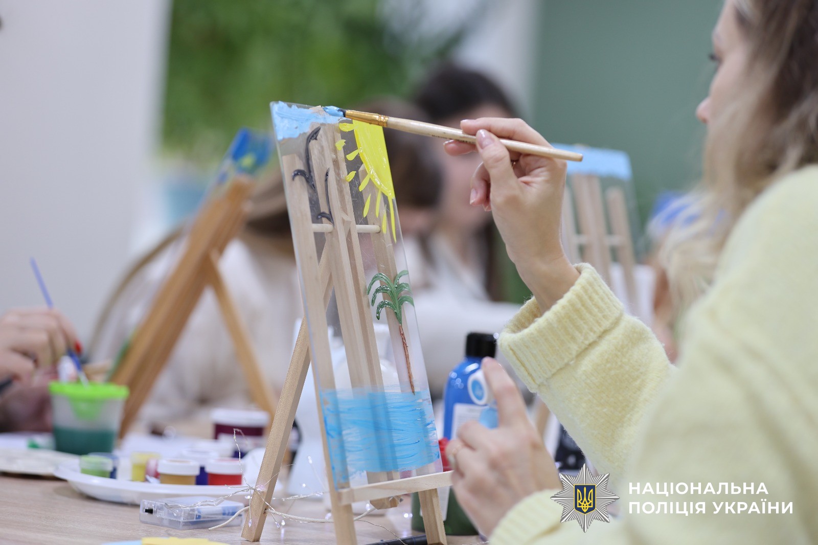 У межах Всеукраїнської програми ментального здоров’я «Ти як?», ініційованої першою леді України Оленою Зеленською, а також проєкту «Пункт психологічних практик» психологині ГУНП в Херсонській області провели арт-інтенсив для жінок-поліцейських, які служать у прифронтовій зоні, а також для дружин загиблих захисників.