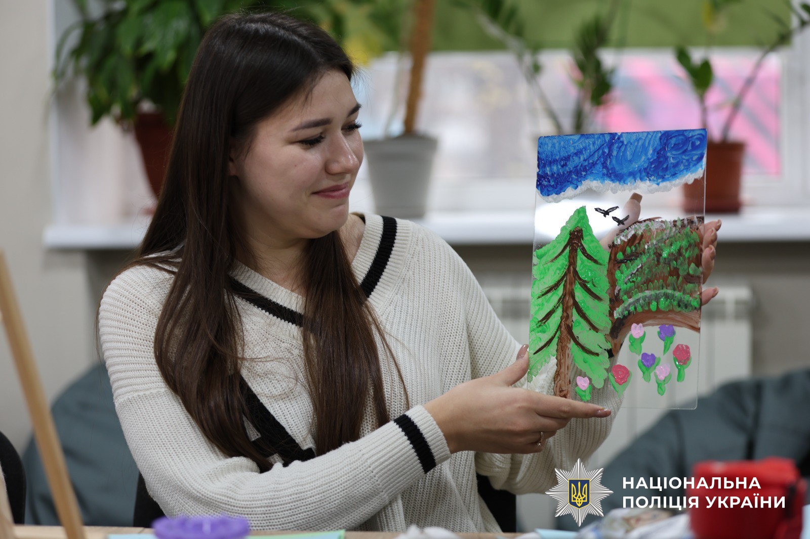 Малювання на склі як шлях до відновлення: на Херсонщині відбувся арт-інтенсив для жінок-поліцейських та дружин загиблих захисників