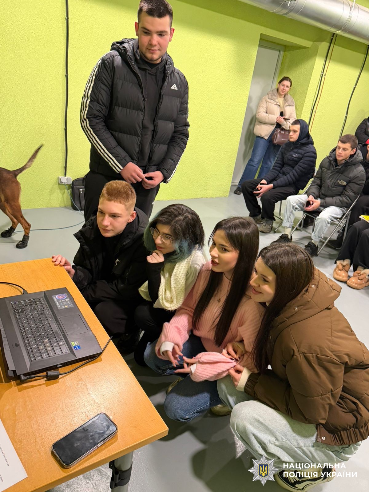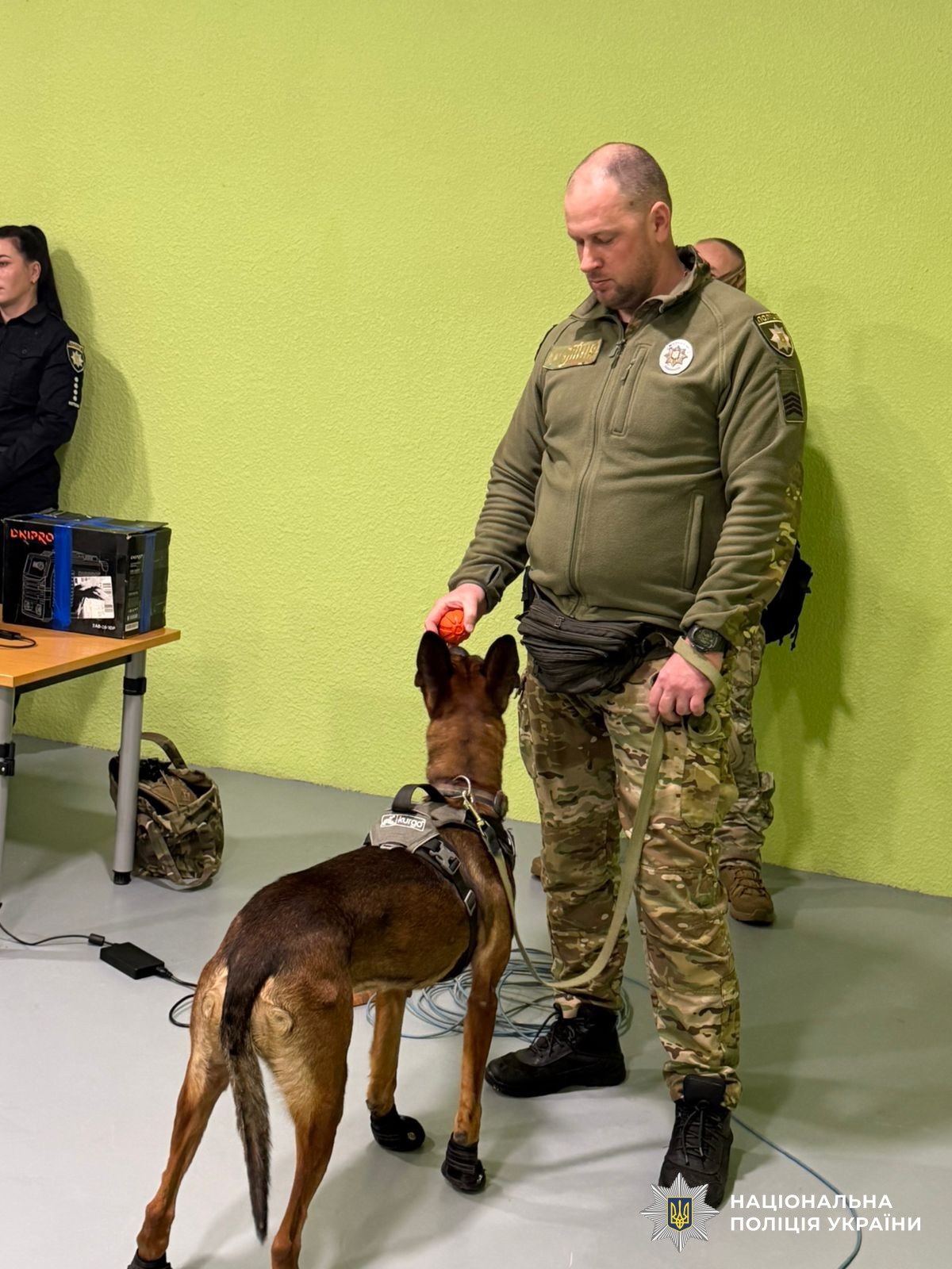 Особливу зацікавленість викликав показовий виступ кінолога зі службовою собакою Корою, яка продемонструвала навички пошуку речей. Учні мали змогу переконатися, що ефективність виконання завдань значною мірою залежить від професійної підготовки та злагодженої взаємодії поліцейського зі своїм чотирилапим напарником.