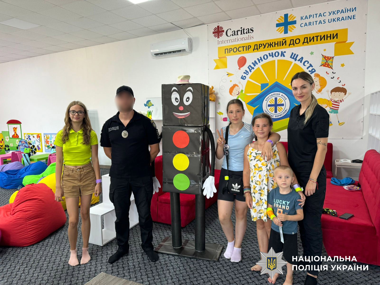 Вчора працівники ювенальної превенції спільно з поліцейськими сектору реагування патрульної поліції Бериславського районного відділу поліції та представниками благодійного фонду «Карітас» провели цікавий та пізнавальний інтерактивний захід із дотримання правил дорожнього руху для дітей внутрішньо переміщених осіб, які тимчасово проживають у Великій Олександрівці.