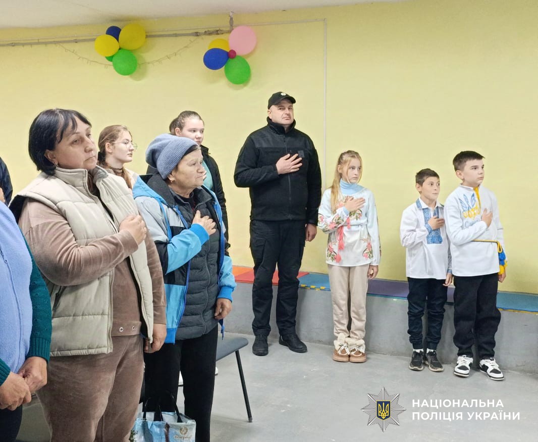 На початку зустрічі поліцейський разом із дітьми та іншими жителями громади вшанували хвилиною мовчання пам'ять воїнів, які поклали своє життя за свободу рідної землі та мирнє майбутнє України.