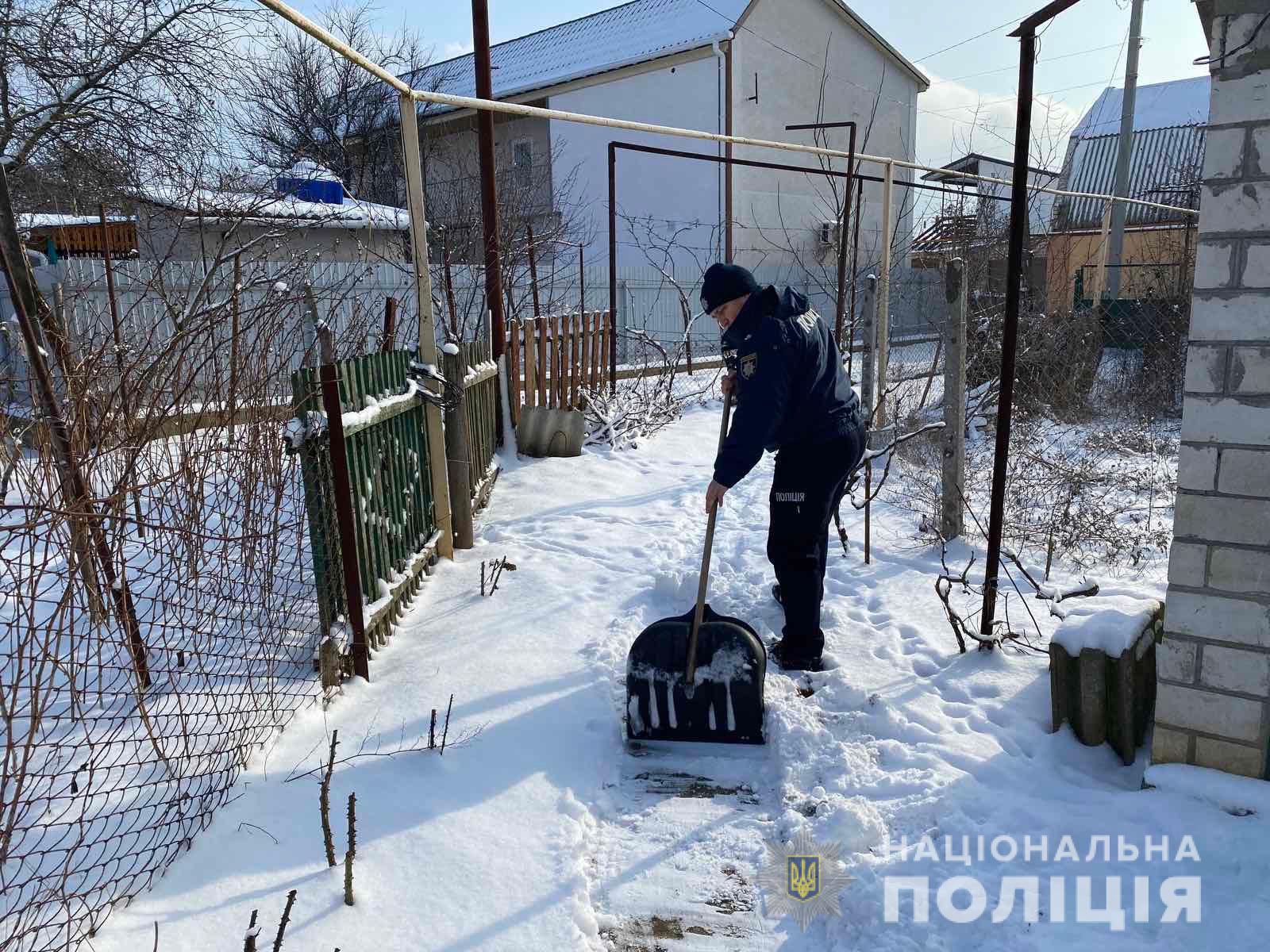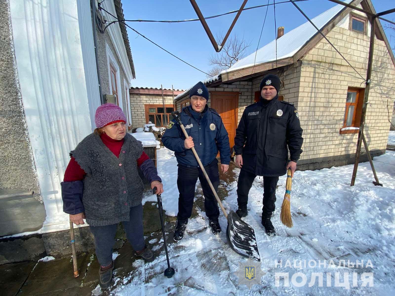 На Херсонщині другу добу вирує негода, яка суттєво ускладнює життя літніх людей. Дільничні офіцери поліції та поліцейські офіцери громади продовжують допомагати людям поважного віку, які проживають у сільській місцевості, боротися з наслідками снігової стихії.