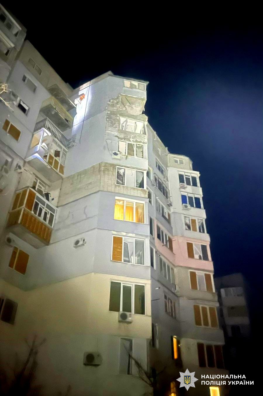 У Херсонському районі поліція зафіксувала пошкодження 39 об’єктів: 6 багатоповерхових та 21 приватного будинку, підприємства, адміністративної будівлі заводу, навчальних закладів, дитячого садочка, будинку культури, гуртожитку, приміщення банку, магазину, автомобілів, ліній електропередач та газових труб.
