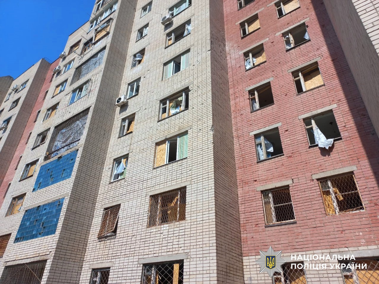 Руйнувань та пошкоджень зазнали п’ять приватних та три багатоповерхові будинки, навчальний заклад, гуртожиток, адмінбудівля, цивільний автомобіль та спецтехніка ДСНС.