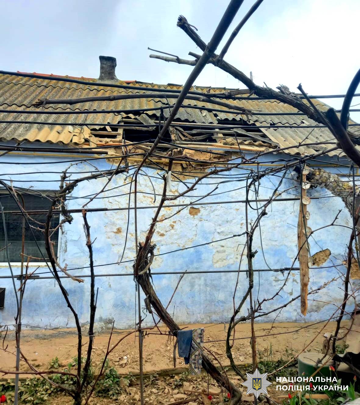 У Новобериславі ворожий дрон атакував житловий будинок. Внаслідок вибуху 47-річний чоловік отримав вогнепальну рану тулуба, від госпіталізації він відмовився.