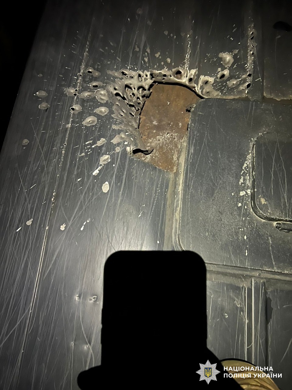 Обстрілами пошкоджено 23 об’єкти: три багатоквартирні та п’ять приватних будинків, об’єкт критичної інфраструктури, три цивільні, комунальний, вантажний та чотири службові автомобілі поліції, фермерське господарство, гараж і автобус.