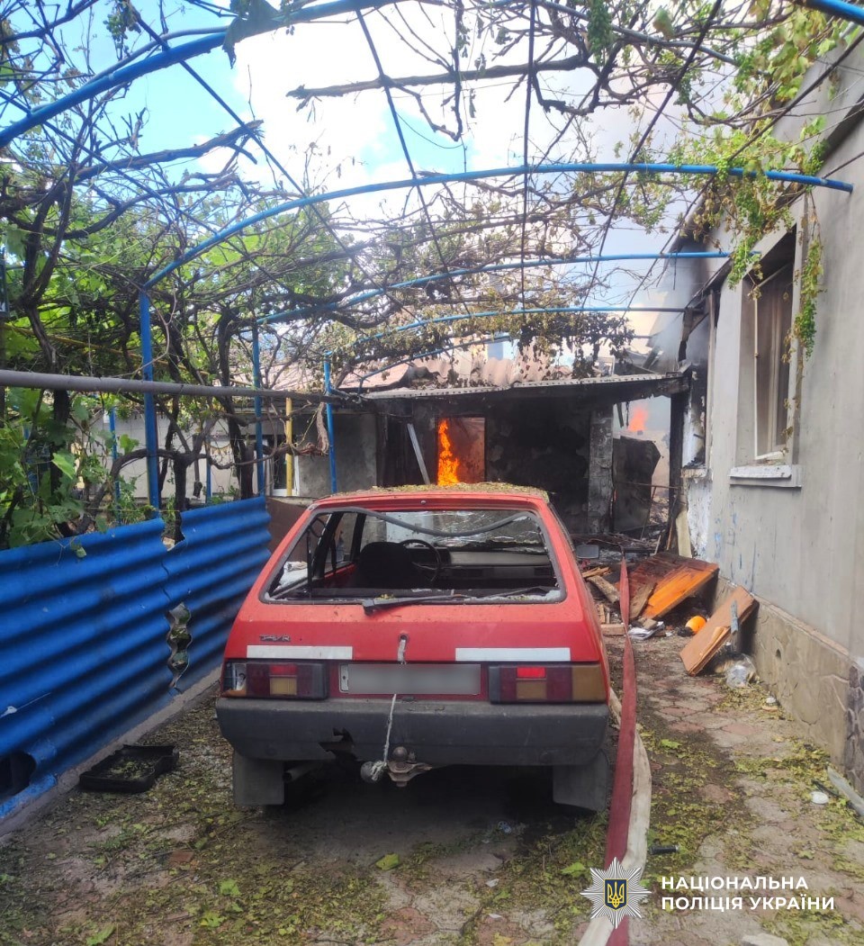 Внаслідок російської атаки безпілотниками пошкоджено п’ять приватних будинків, легковий автомобіль та сталося загоряння сухої трави в Антонівці, Садовому, Станіславі й Новоолександрівці.