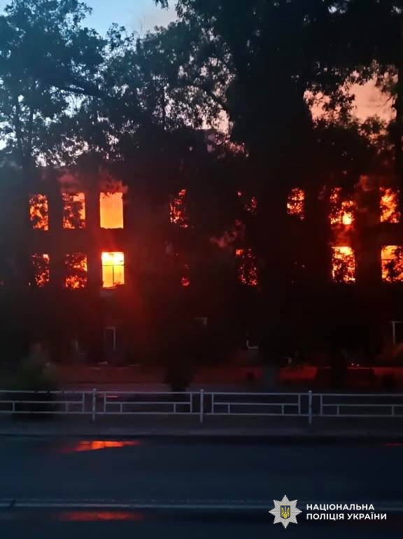 Після опівночі російські військові здійснили комбінований обстріл центральної частини Херсона, по житлових кварталах били з артилерії та РСЗВ. Прямим влучанням окупанти зруйнували триповерховий головний корпус вищого навчального закладу, там виникла масштабна пожежа. В епіцентрі ударів пошкоджено гімназію та об’єкти інфраструктури, адміністративну будівлю, два багатоповерхові будинки і три автомобілі.