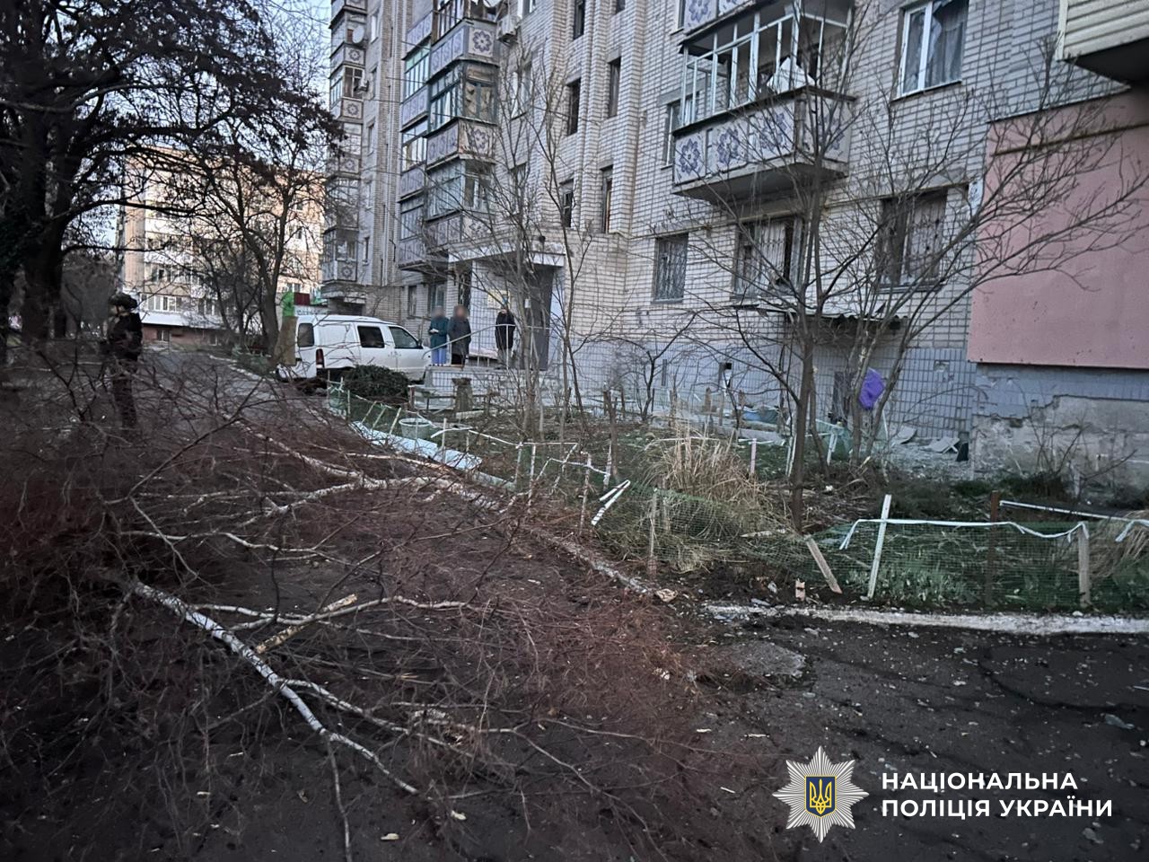 FPV-дроном російські військові вдарили по службовому автомобілю поліції у Антонівці, внаслідок чого транспортний засіб зазнав пошкоджень. Працівники поліції не постраждали.