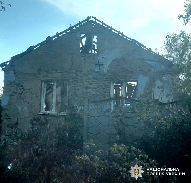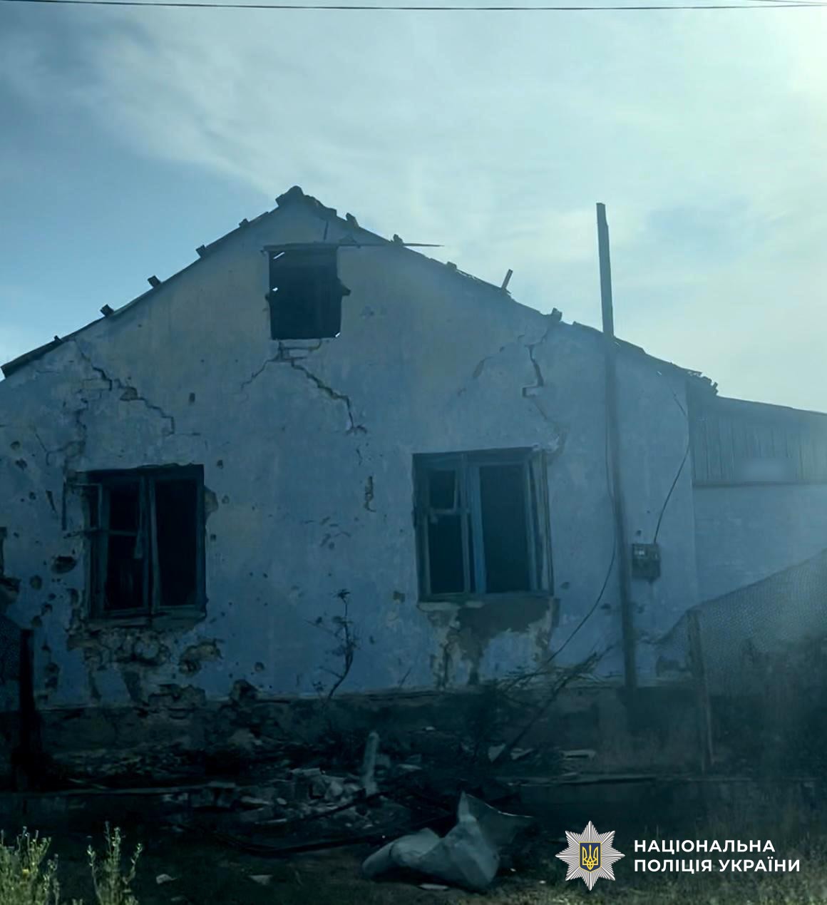російські удари спричинили пошкодження 28 приватних та одного багатоквартирного будинку, навчального закладу, службового автомобіля поліції та гаражного приміщення.