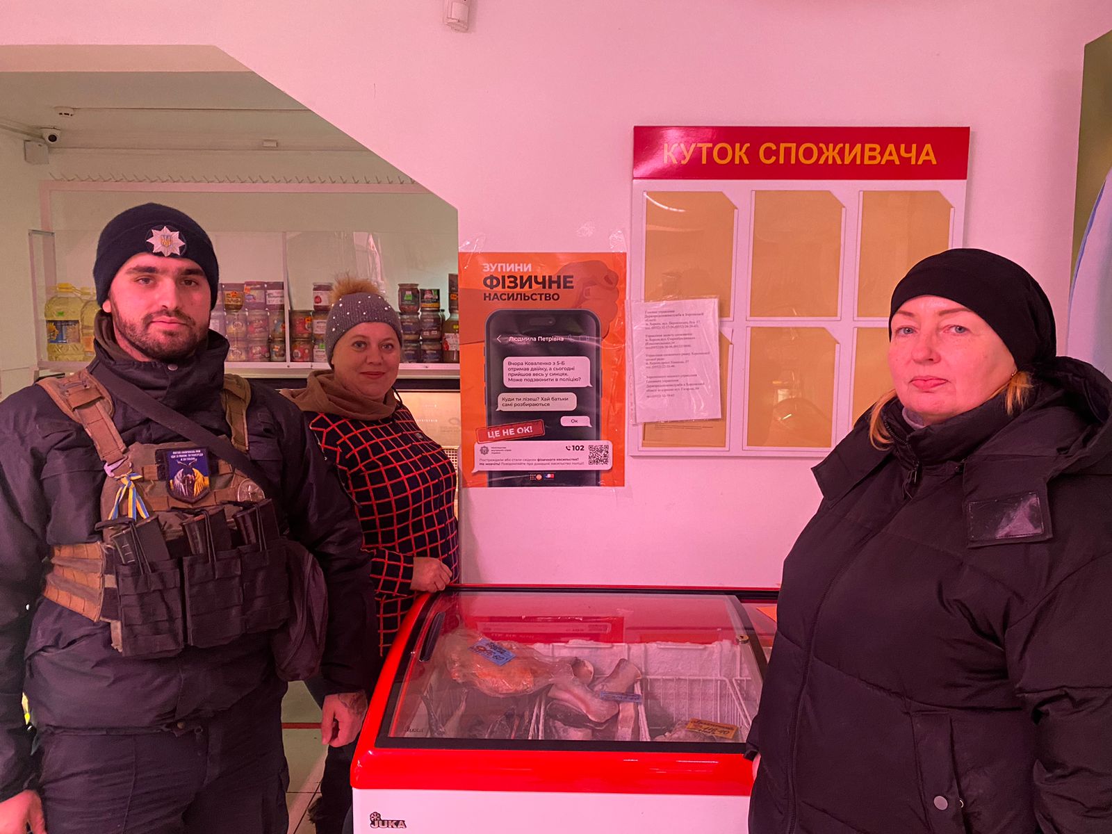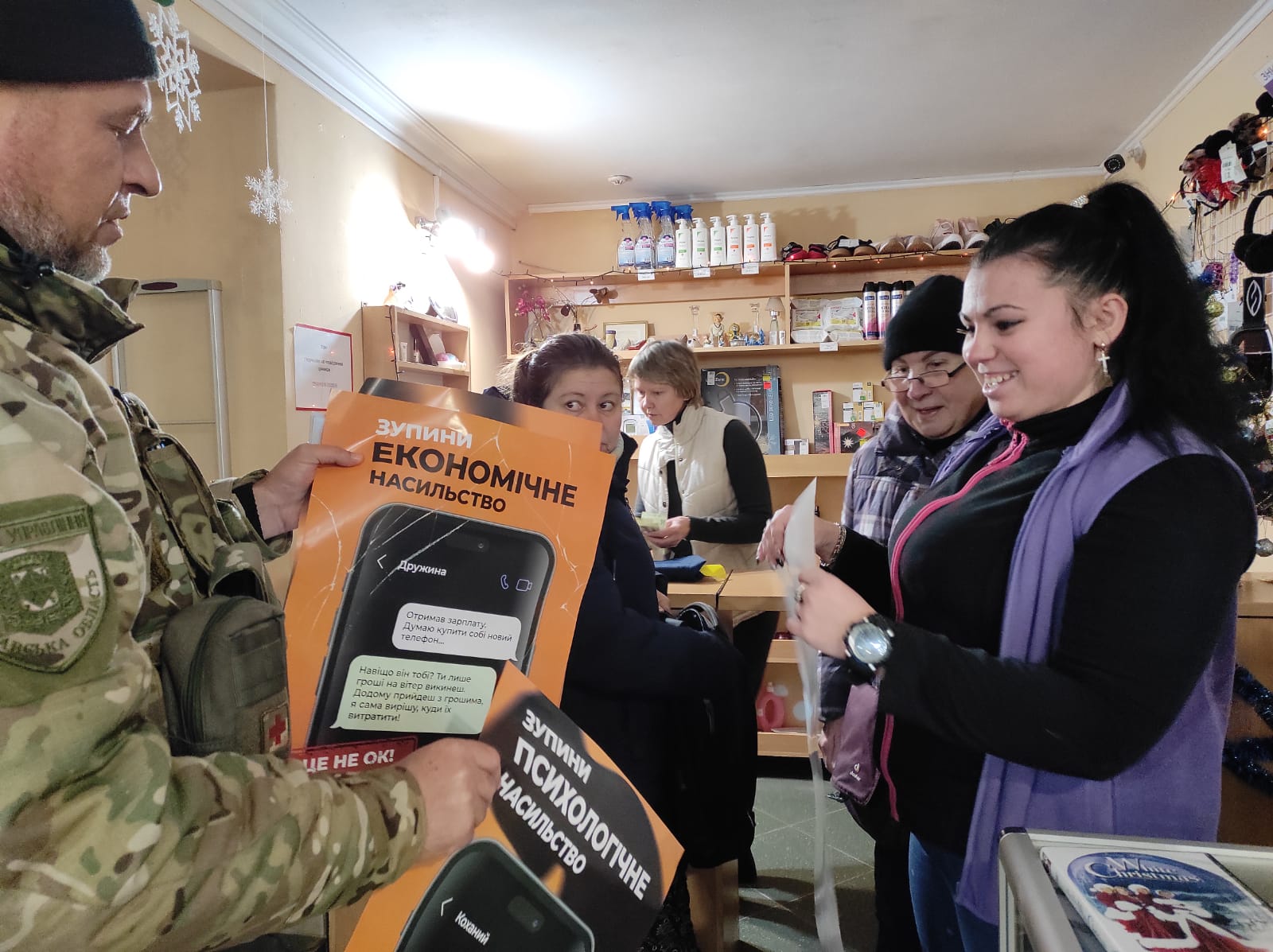 Тож активну участь у профілактиці насильства беруть, зокрема, дільничні офіцери поліції. В рамках проведення акції у Херсоні, на Білозерщині та Бериславщині дільничні розвішали тематичні плакати на зупинках громадського транспорту, у приміщеннях магазинів, аптек та в інших місцях перебування громадян.