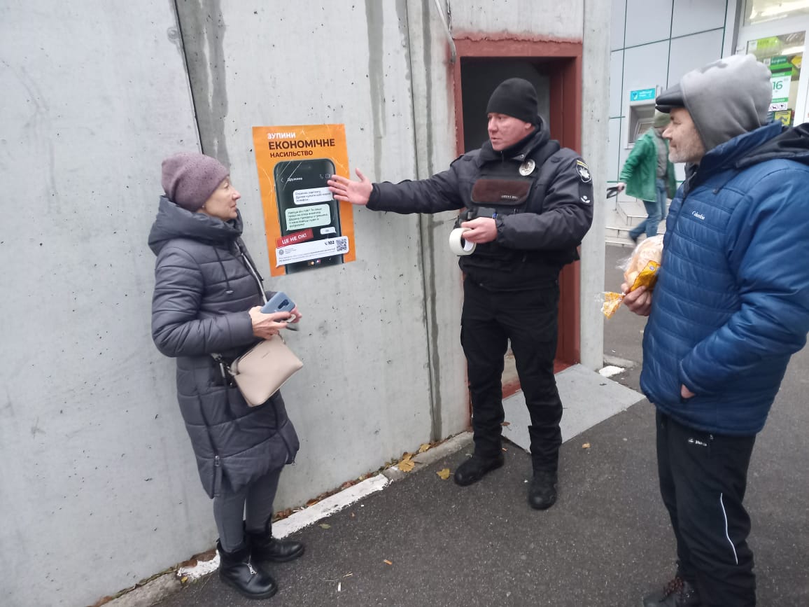 Також поліцейські приділяють значну увагу й особистому спілкуванню з жителями територій, яку обслуговують. Під час розмови дільничні поширюють пам'ятки, в яких зазначені QR-код та чат-бот, за допомогою яких можна дізнатись про сервіси допомоги потерпілим, отримати необхідну послугу або повідомити про факт домашнього насильства.