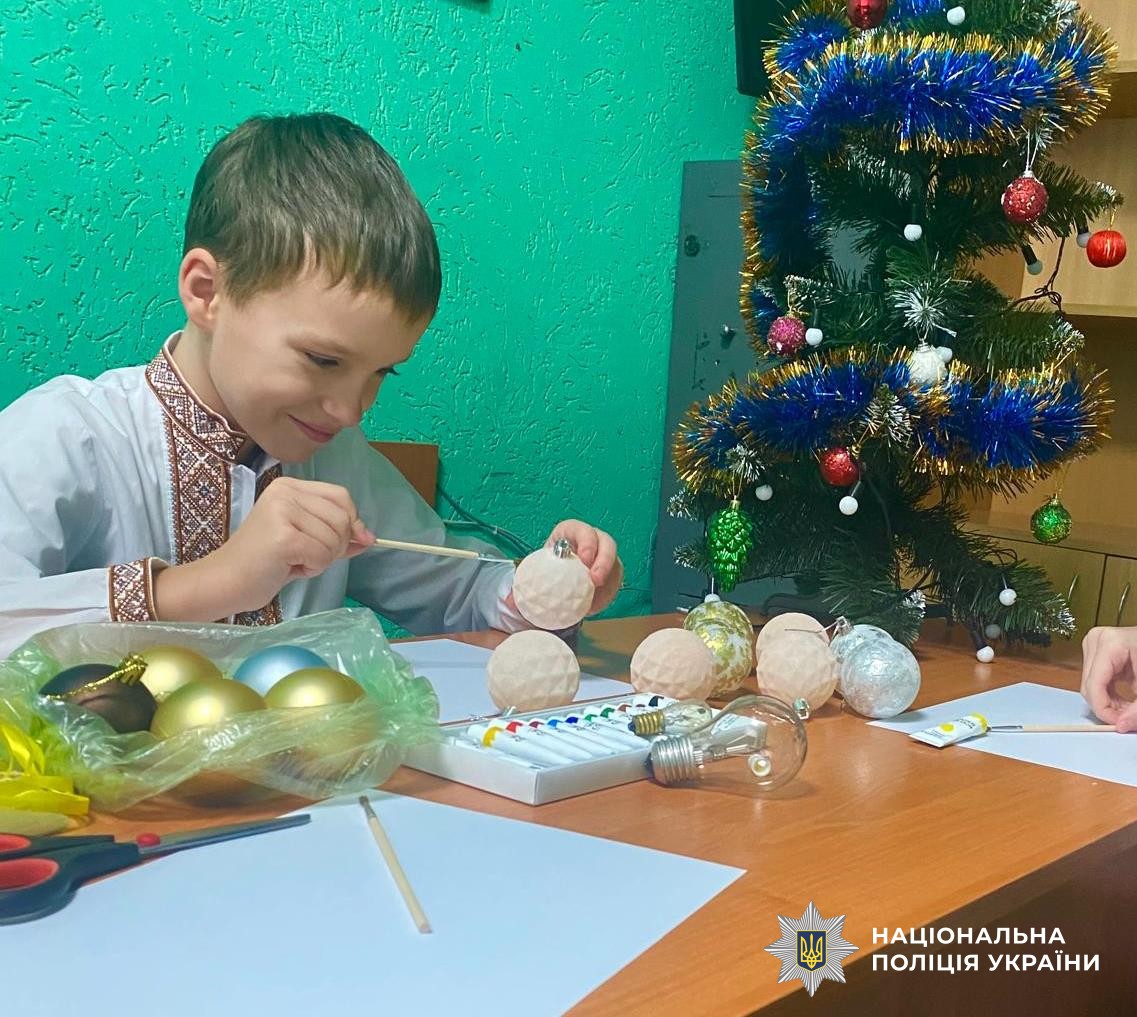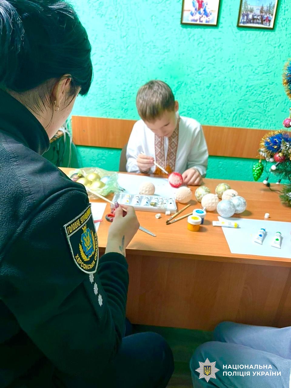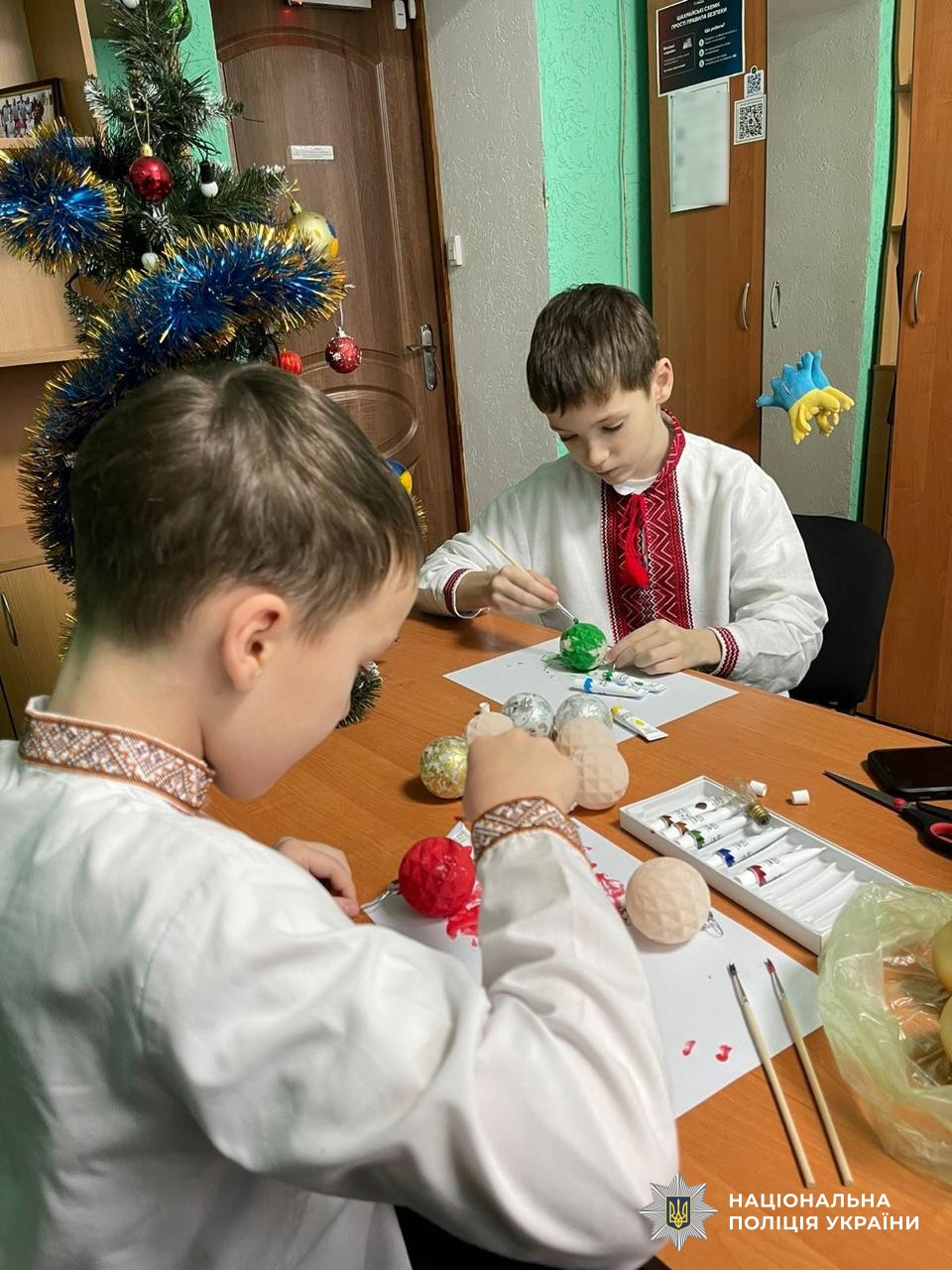 Працівники ювенальної превенції завітали до маленьких мешканців Високопілля, аби привітати їх зі святами, підняти настрій та разом виготовити патріотичні іграшки для новорічної ялинки.