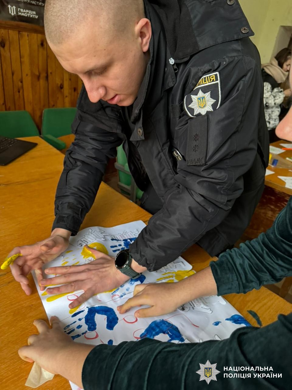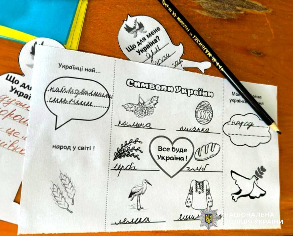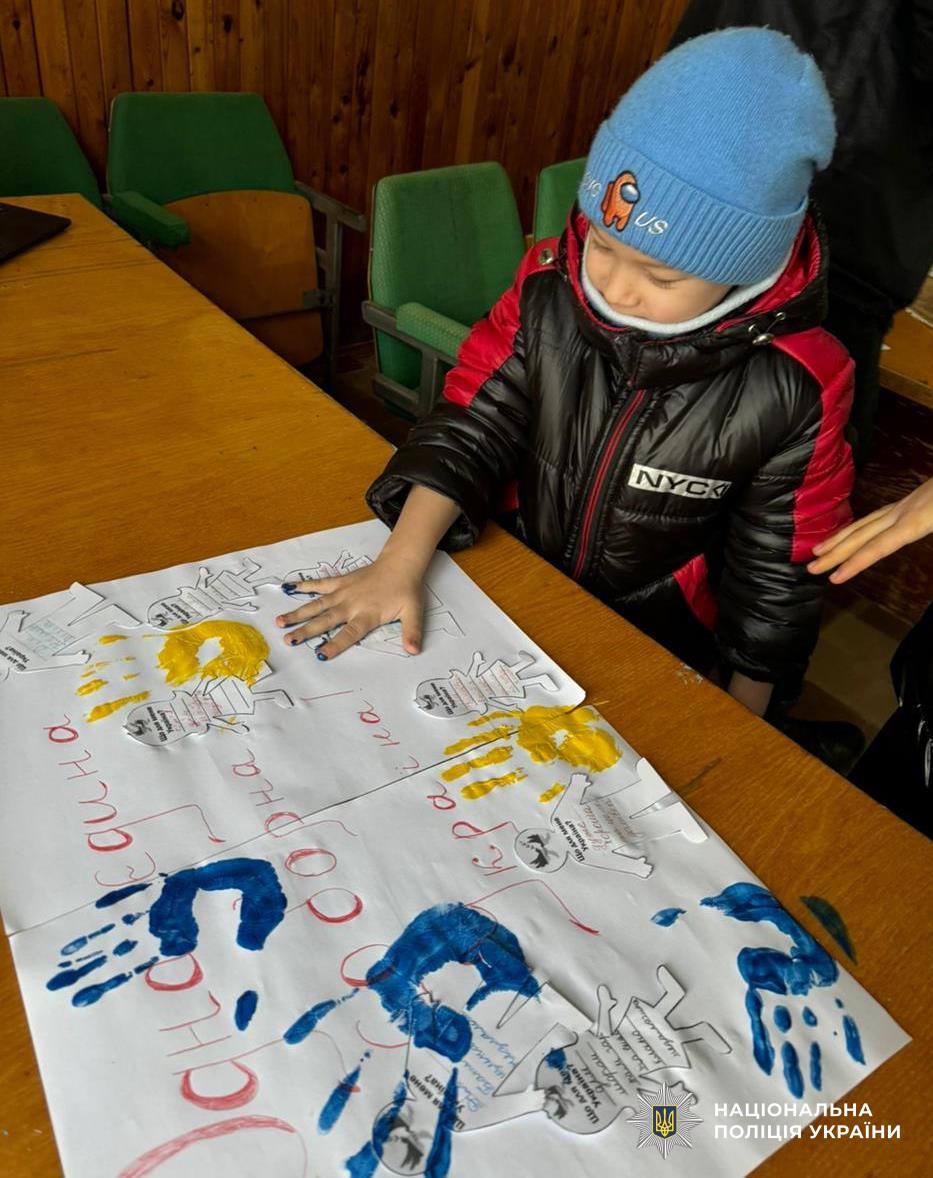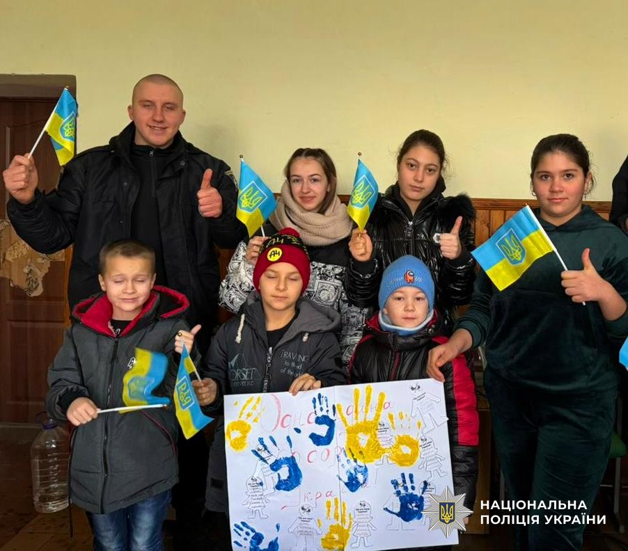 На Херсонщині ювенальні поліцейські провели для діток із деокупованої громади патріотичний захід до Дня Соборності України