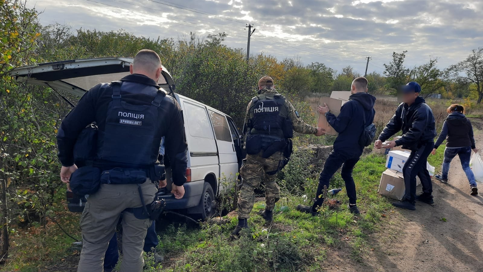 На Херсонщині поліцейські допомогли волонтерам, авто яких з’їхало в кювет, довезти гуманітарну допомогу жителям деокупованої Великої Олександрівки