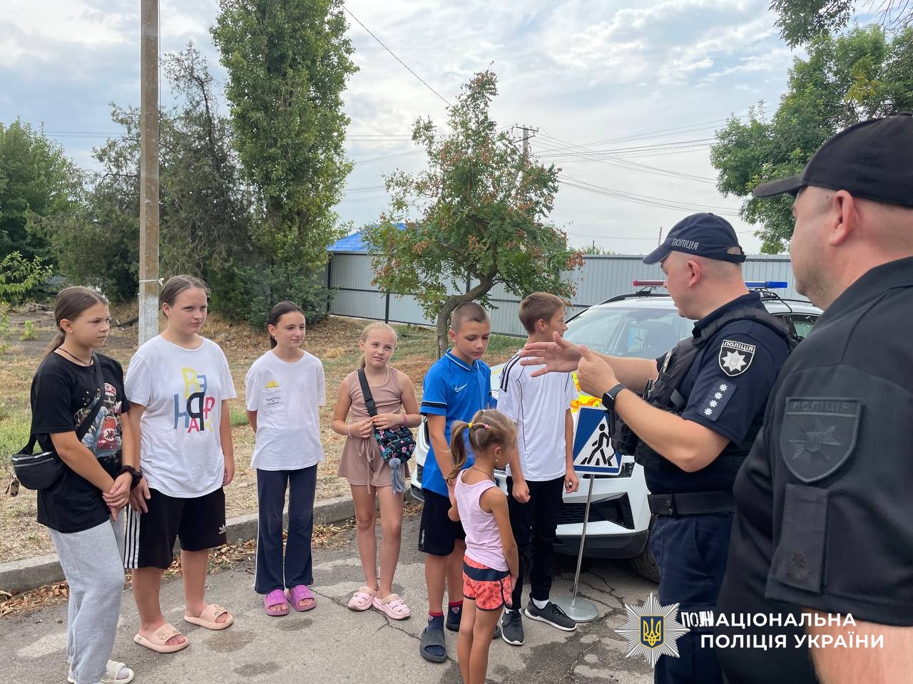 Поліцейські звернули увагу дітей на правила переходу вулиці, зокрема за наявності чи відсутності світлофора та пішохідного переходу, заборону ходити або гратися на проїжджій частині, як правильно рухатися узбіччям, якщо немає тротуару. Дітям пояснили, що під час перетину пішохідного переходу необхідно знімати навушники та не відволікатися на телефон. Закликали бути особливо уважними у вечірній час та подарували флікери, щоб школярі були помітні водіям.