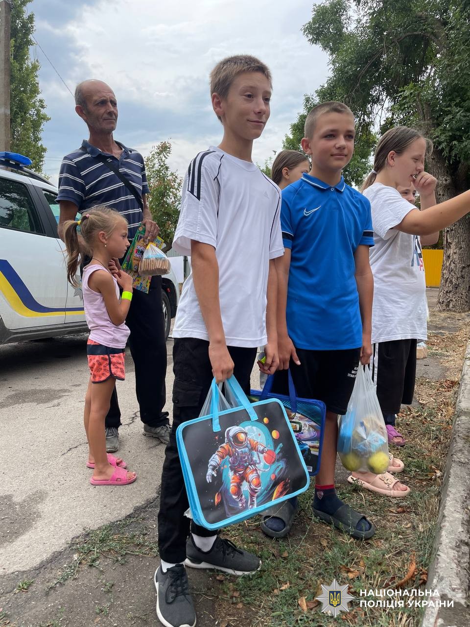 На Херсонщині поліцейські нагадали діткам про безпечну поведінку на дорозі й привітали з початком нового навчального року