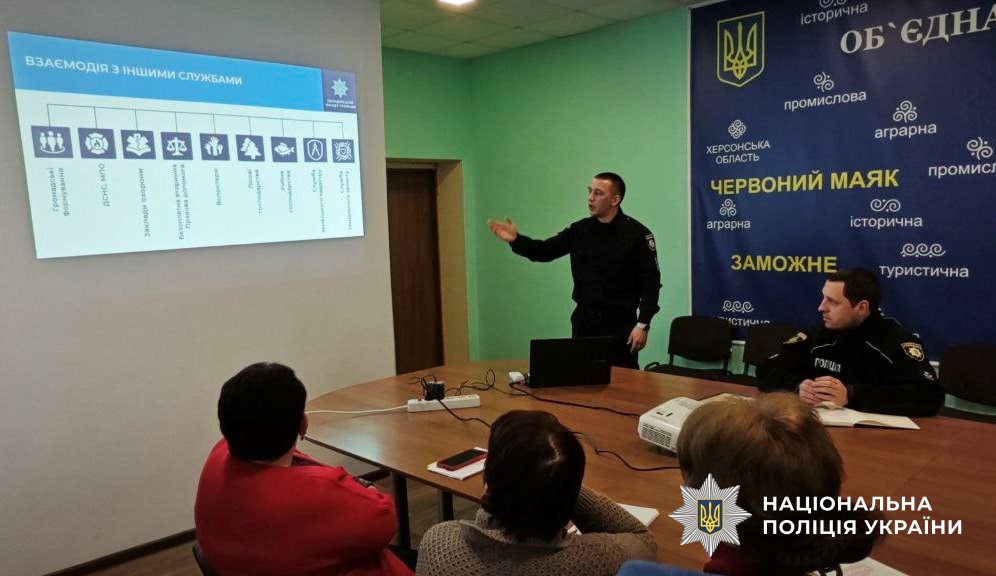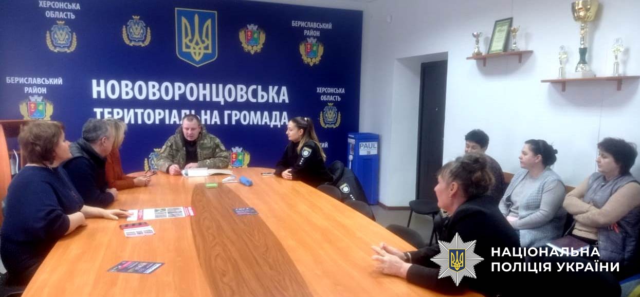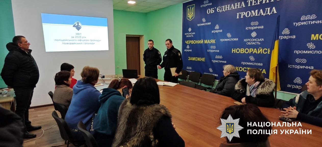 У 17 деокупованих громадах Херсонщини відбулися робочі зустрічі дільничних офіцерів поліції та поліцейських офіцерів громад з представниками місцевої влади. Поліцейські розповіли про результати своєї роботи за минулий рік, які заходи вживали для профілактики злочинів та правопорушень у межах своєї громади, як реагували на проблеми громадян.