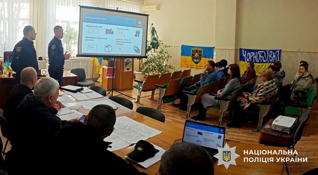 Доповіли про кількість розглянутих звернень громадян, розкритих злочинів та складених адміністративних матеріалів. Детально обговорили, як документуються факти пошкодження майна внаслідок ворожих обстрілів, яка допомога надається постраждалим від російської агресії, як проходять евакуаційні заходи родин з дітьми та літніх людей у більш безпечні регіони. А також, з якими труднощами стикаються поліцейські при проведенні роз’яснювальної роботи з родинами, які відмовляються виїжджати з дітками із обстрілюваних армією рф населених пунктів. Розповіли, як запобігають мародерству та крадіжкам у тих місцях, звідки люди вже евакуювались.