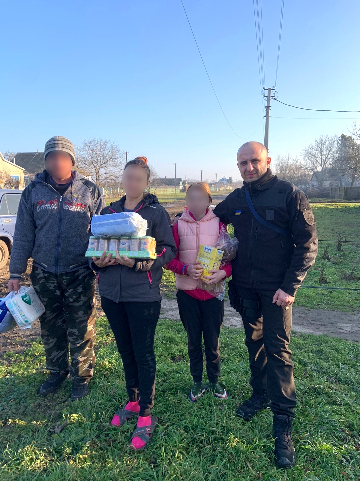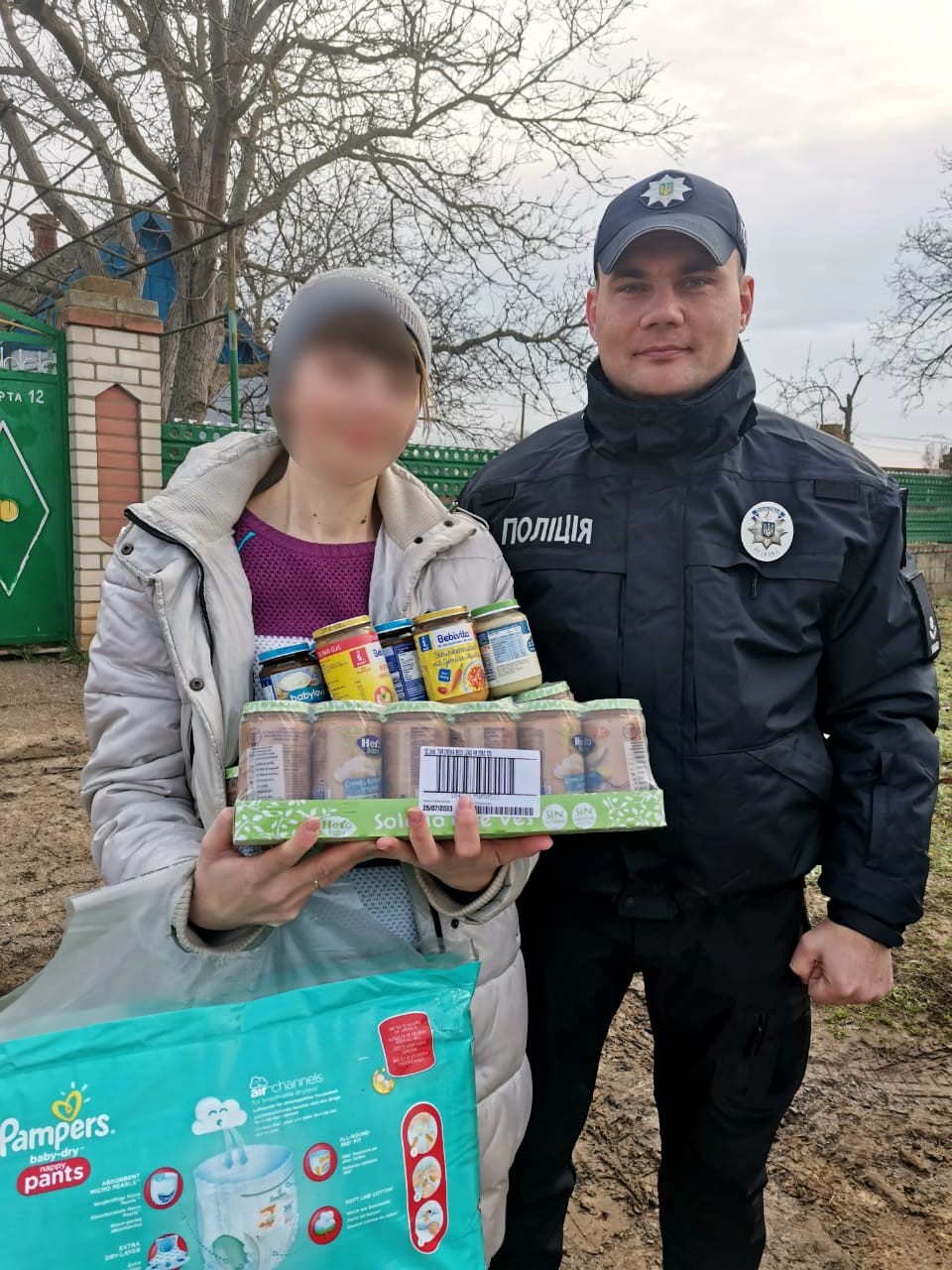На Херсонщині поліцейські передали гуманітарну допомогу родинам з дітками, які народилися під час війни
