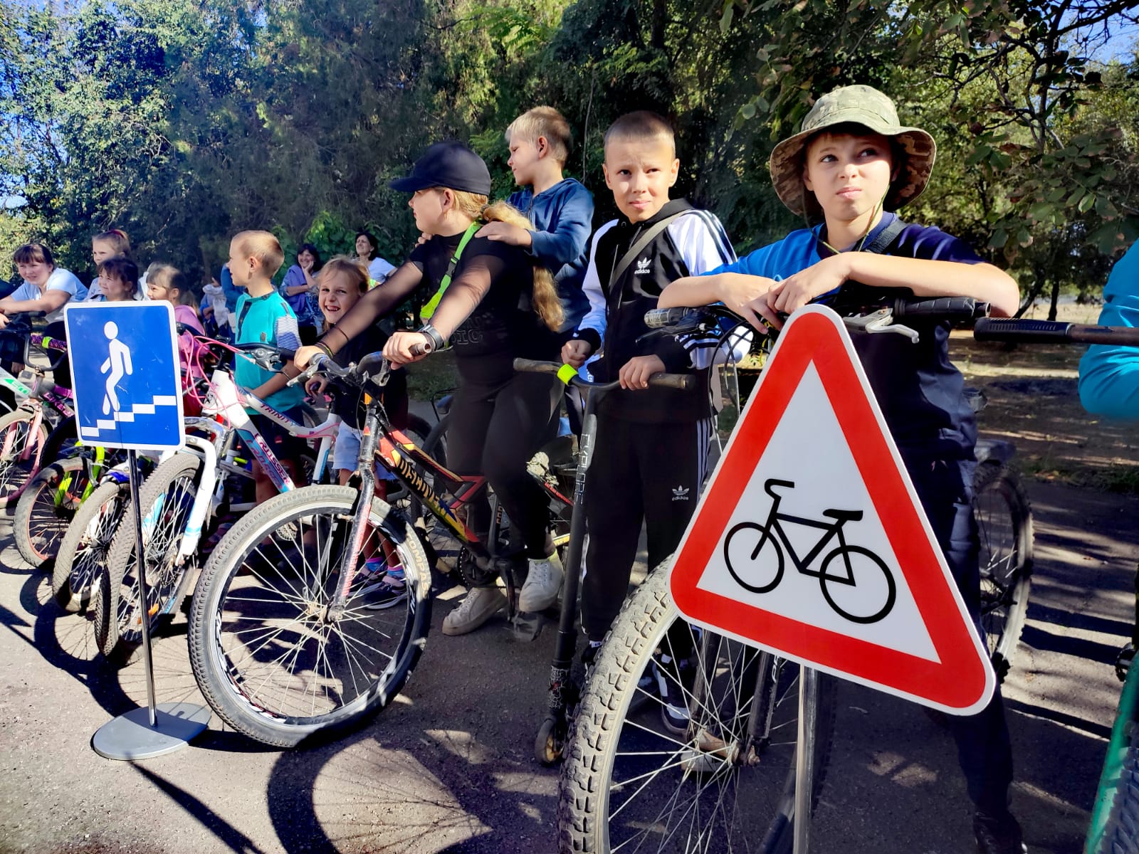 Дітям пояснили, що велосипед – це не іграшка, а транспортний засіб, і вони, сідаючи на нього, теж стають учасниками дорожнього руху. Після чого почалися практичні вправи у парковій зоні.