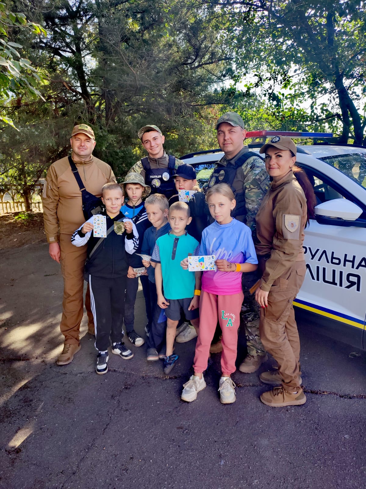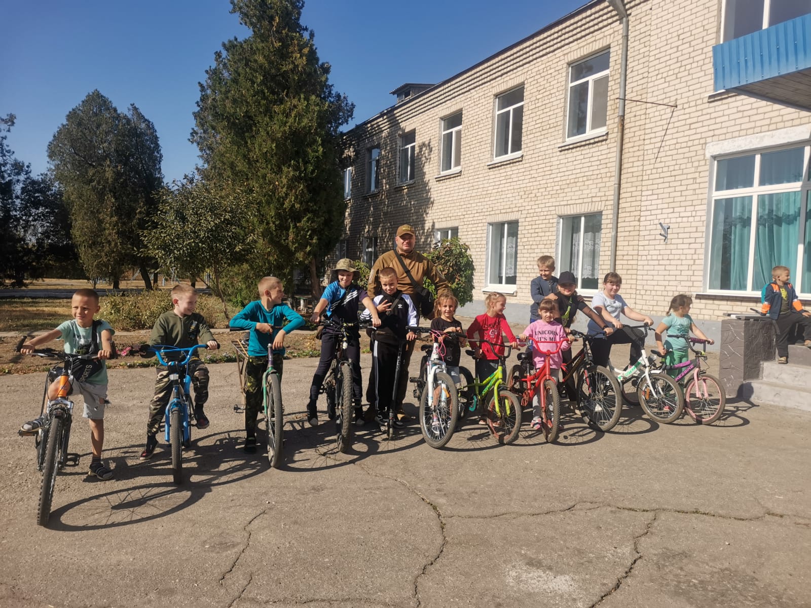 У одному з населених пунктів Чорнобаївської територіальної громади працівники ювенальної превенції спільно з патрульними поліцейськими провели для місцевих дітлахів практичний урок щодо правил дорожнього руху, аби виробити у них навички безпечної поведінки на дорозі. Перед приїздом поліцейські попередили, що буде практична частина, тож попросили діток взяти з собою велосипеди.