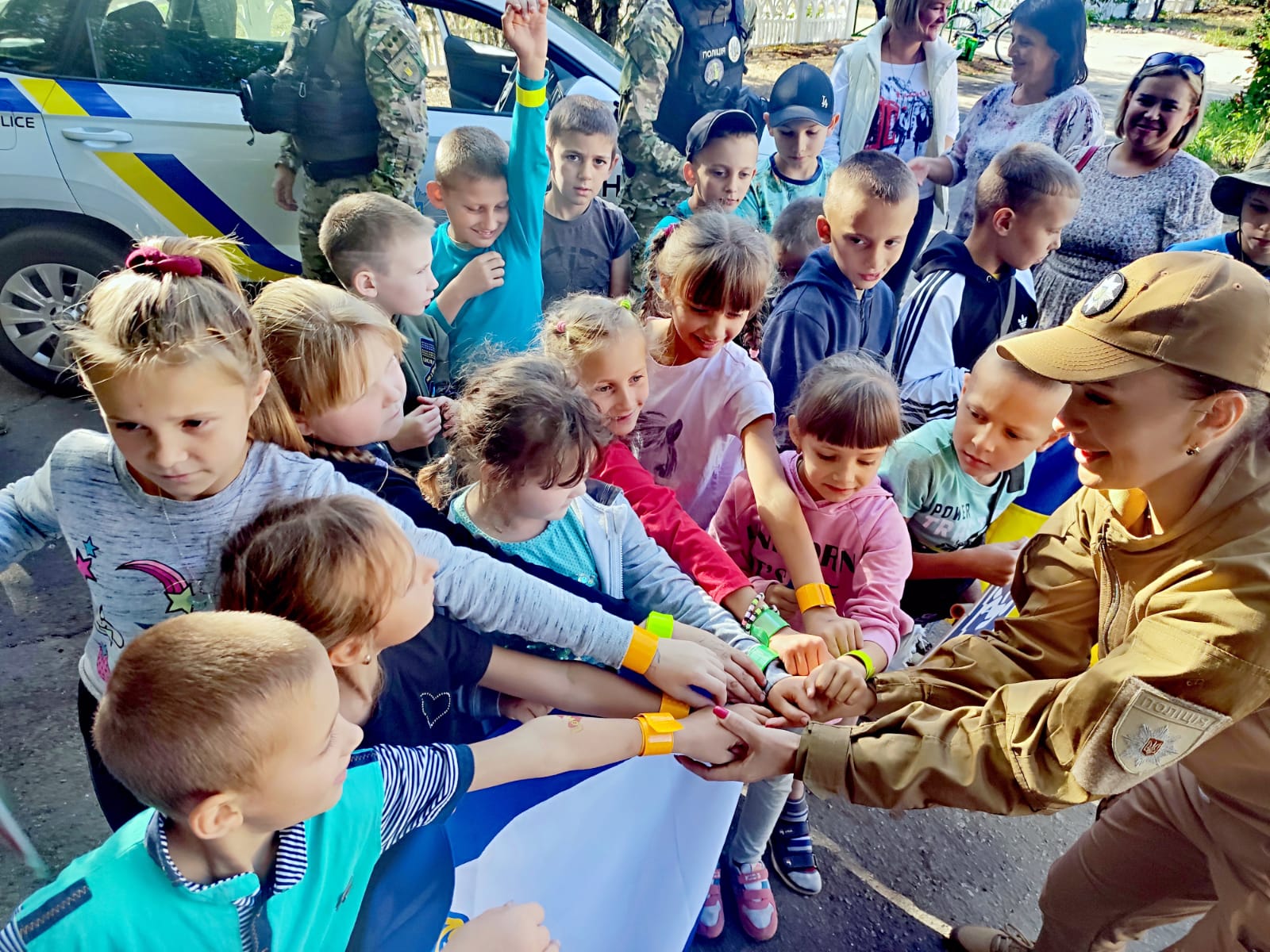 Поліцейські привезли з собою маленькі світлофори і дорожні знаки, намалювали розмітку, а діти виконували різні завдання, демонстрували, як вміло вони об’їжджають перешкоди та їздять дорогою. Усіх учнів ювенальні поліцейські заохочували сувенірами – флікерами.