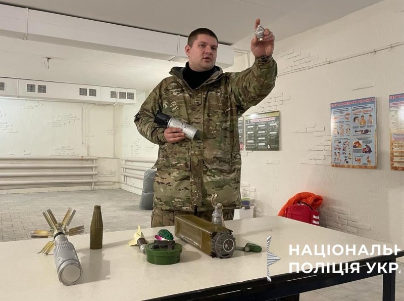 На спеціальних макетах вибухотехніки продемонстрували, як можуть виглядати снаряди, міни, гранати, набої та яку небезпеку вони становлять. Людям розповіли, як діяти, якщо вони натраплять на якісь із цих вибухонебезпечних предметів.