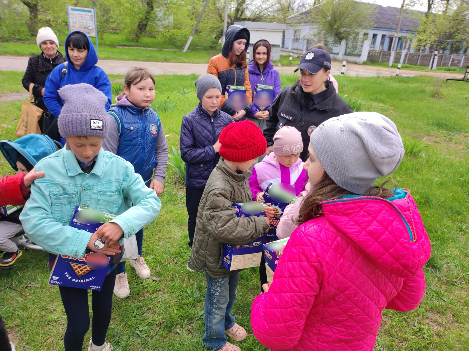 Жителі цих населених пунктів після деокупації вирішили не виїжджати у більш безпечні місця та продовжують налагоджувати побут. У двох селах залишилося 144 дитини, які виходять на онлайн-навчання навіть попри відсутність інтернет-зв’язку та періодичні перебої з електропостачанням через обстріли окупантами енергетичних об’єктів. Щоб трохи підняти настрій та розрадити маленьких жителів, поліцейські подарували їм наліпки ювенальної превенції та солодощі.