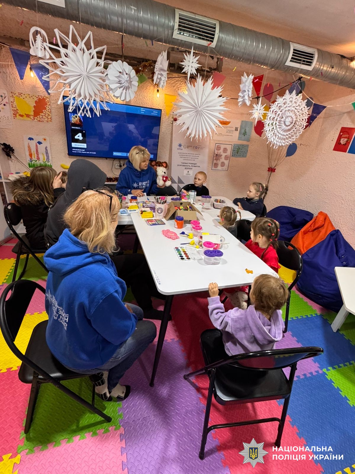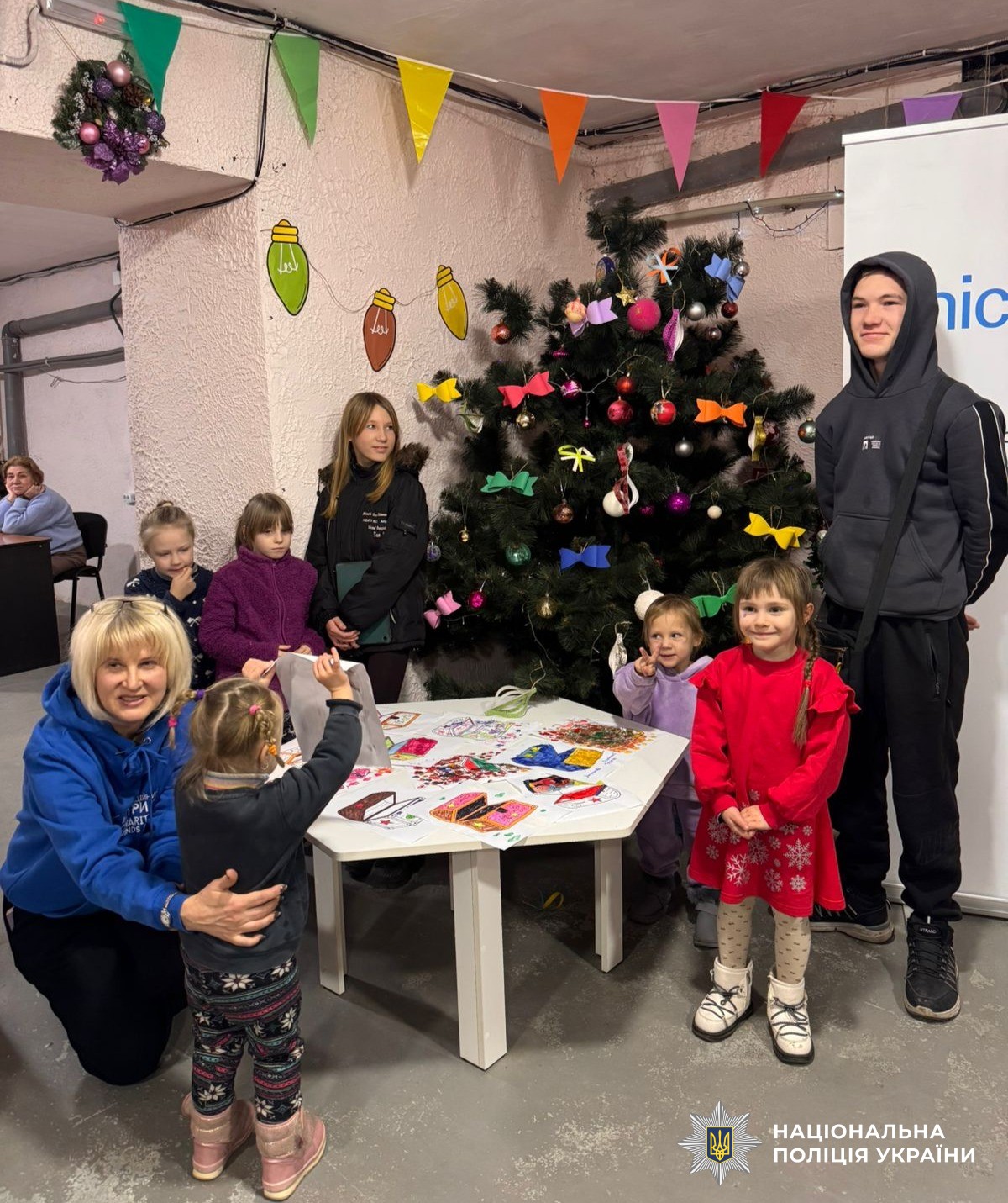 В одному з укриттів ювенальні поліцейські спільно зі службою у справах дітей та благодійним фондом «Вітри змін» провели різдвяний захід для малечі. Діти малювали, танцювали, робили руханки, багато спілкувалися між собою, ділилися мріями та побажаннями. Для них це була можливість хоч ненадовго відволіктися від тривог і відчути радість живого спілкування.