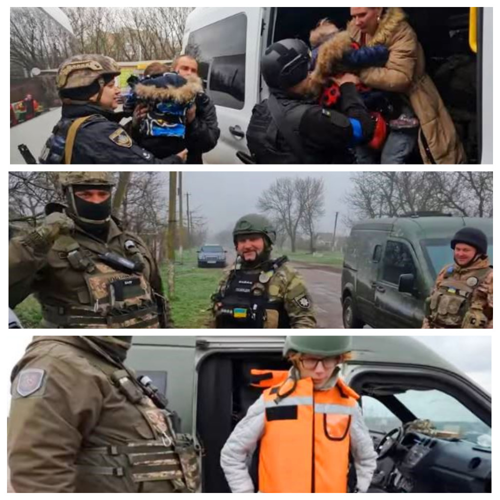 Поліція спільно з волонтерами та представниками Херсонської обласної військової адміністрації проводять евакуаційні заходи з небезпечних районів. Для цього обходять кожен будинок в обстрілюваних ворогом населених пунктах, розмовляють з батьками та переконують родини виїжджати якомога швидше подалі від місць, де не вщухають обстріли.