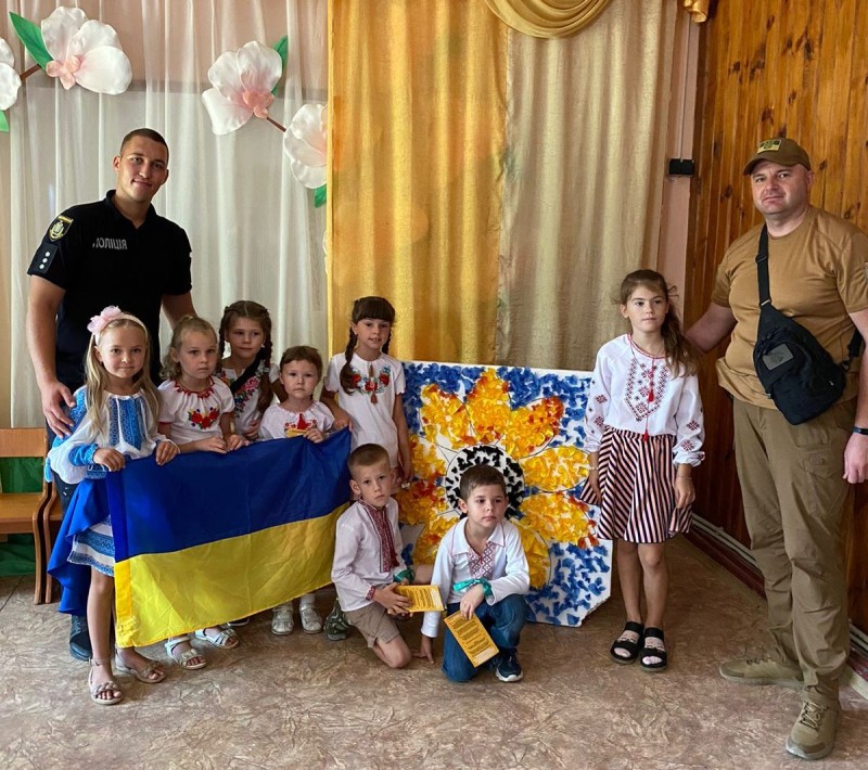 Напередодні Дня Державного Прапора працівники ювенальної превенції спільно з поліцейським офіцером громади провели цікавий та пізнавальний захід для найменших жителів села Киселівка Чорнобаївської громади. Дітям розповіли цікаві факти про найвідоміший державний символ України, який вони щодня бачать на адміністративних будівлях, в автомобілях, який їх батьки зберігали вдома та ховали від російських військових під час 9-місячної окупації.