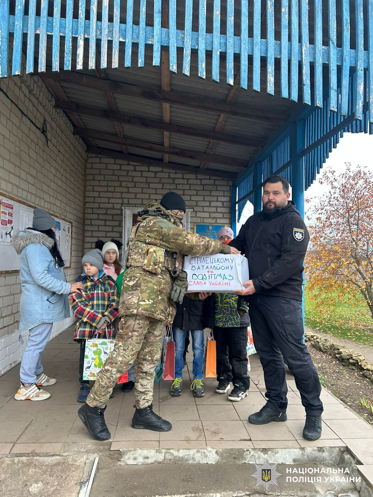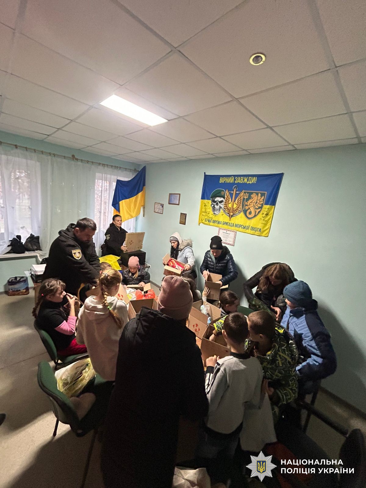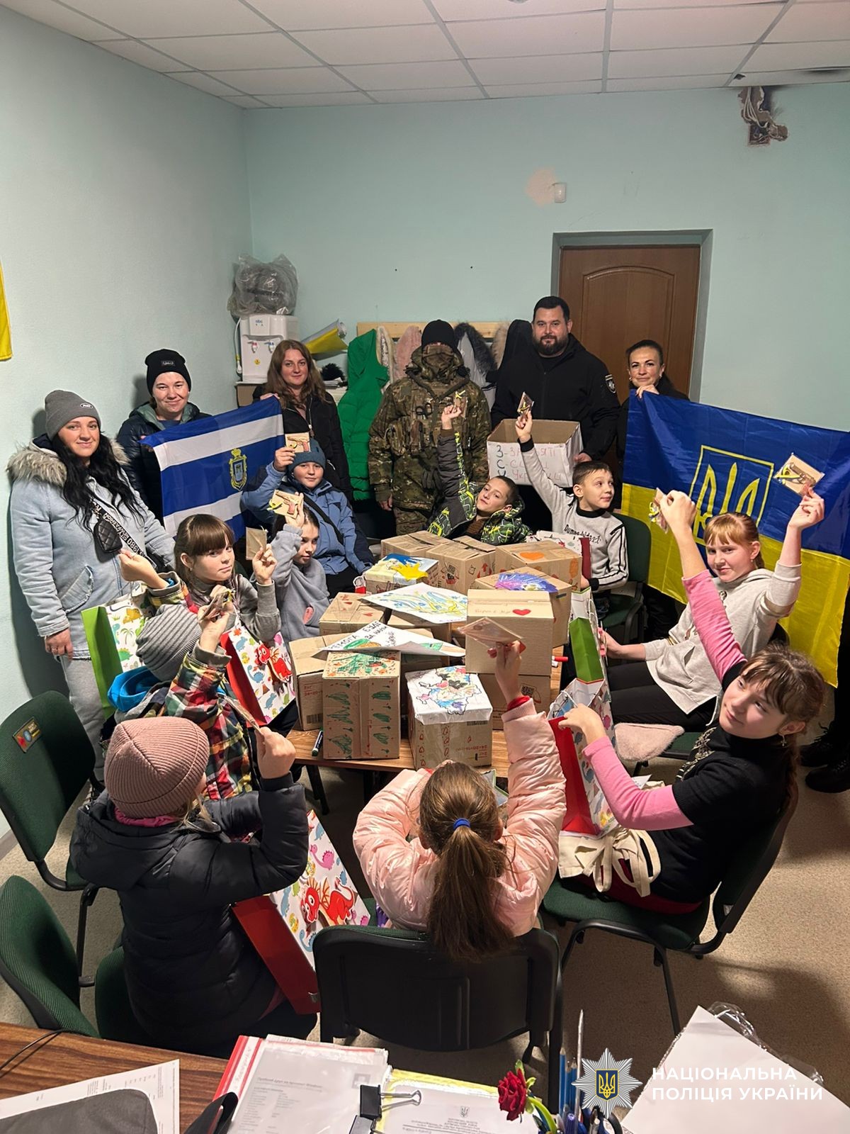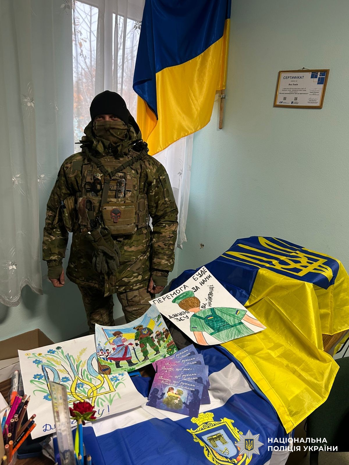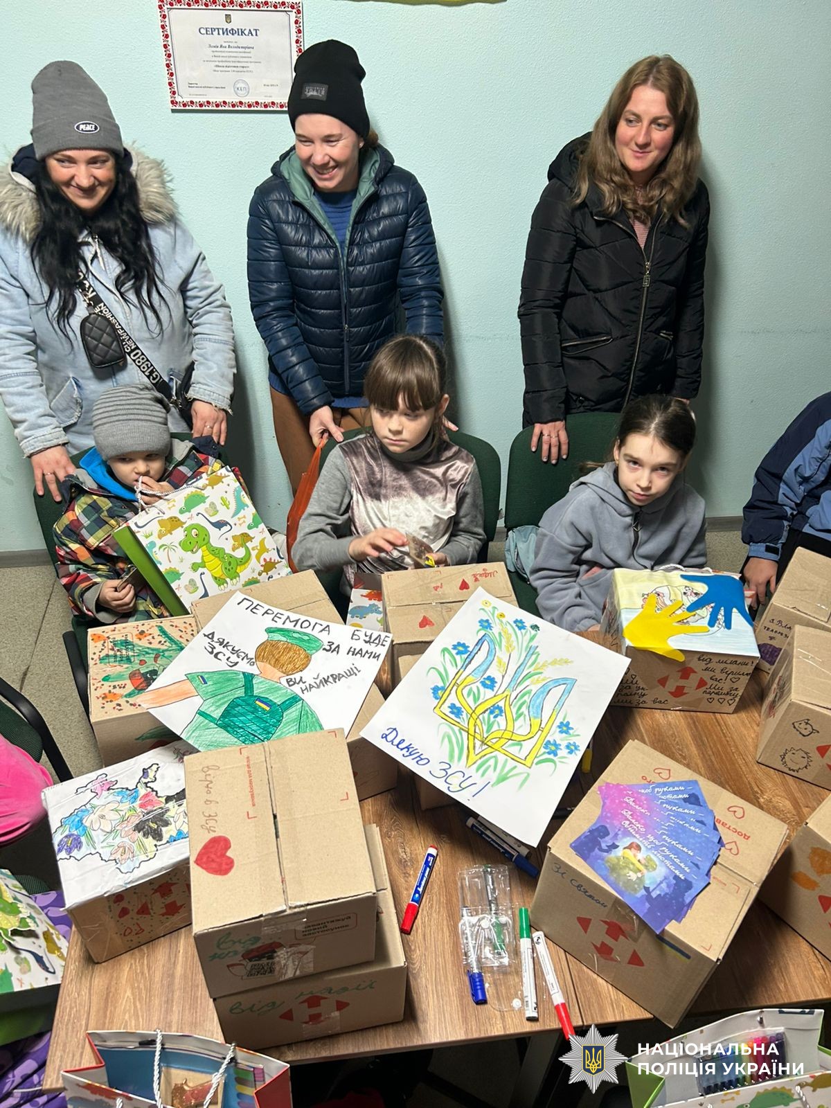 Також поліцейські привітали всіх хлопчиків та дівчаток, які брали участь у виготовленні малюнків, із Днем Святого Миколая, подарували їм солодощі й різні подарунки та побажали завжди вірити у дива та Збройні Сили України.