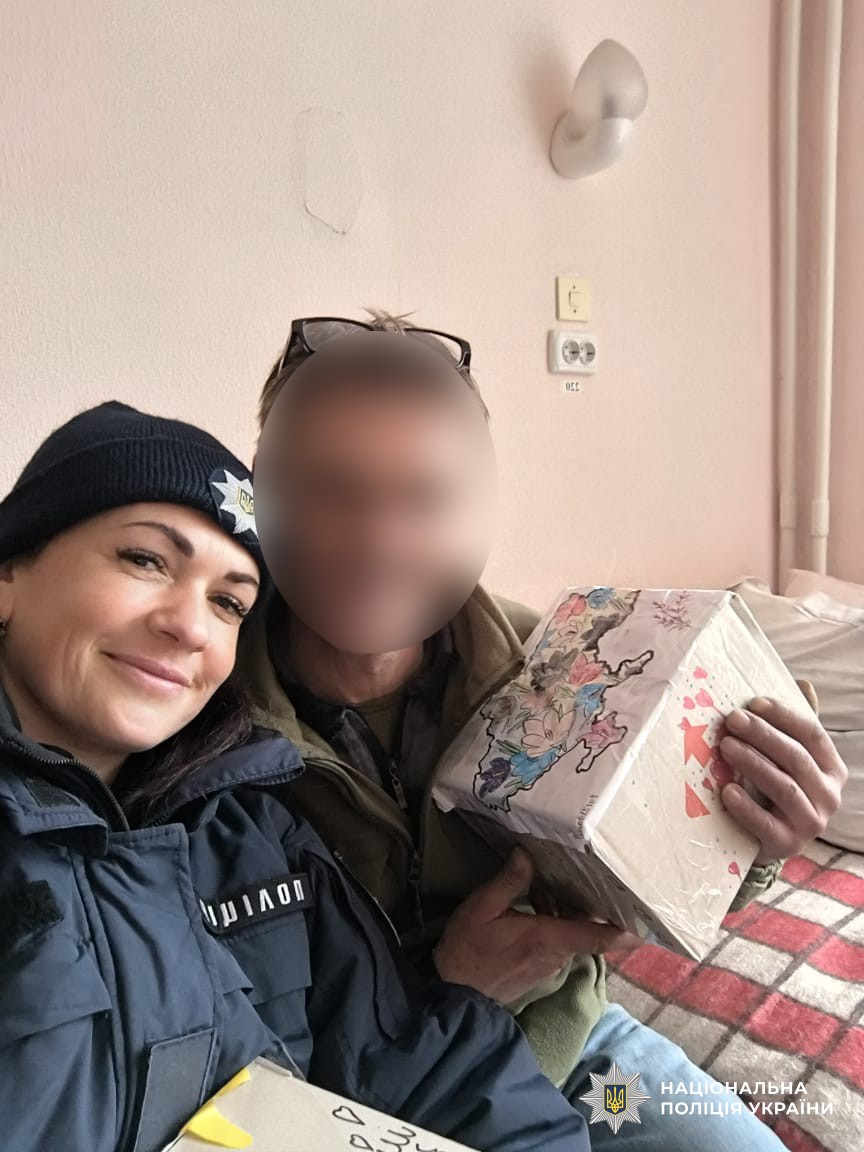 На Херсонщині поліцейські спільно з місцевими жителями передали святкові «коробочки тепла» військовим та дрон колегам зі спецпідрозділу