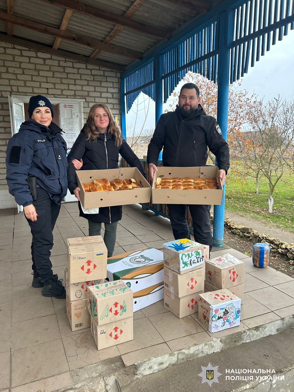 До Дня Збройних Сил України та Дня Святого Миколая працівники відділу організації діяльності ізоляторів тимчасового тримання та моніторингу дій із затриманими обласного главку поліції провели акцію «Долоньки тепла для ЗСУ» разом з жителями Дар’ївської громади. Аби підняти кожному захиснику бойовий настрій та дух напередодні свята, поліцейські спільно з місцевими родинами збирали «коробочки тепла» з подарунками для поранених бійців, які наразі проходять лікування в госпіталі.
