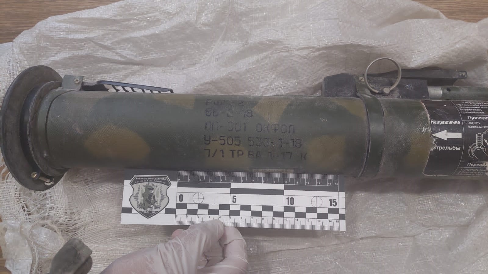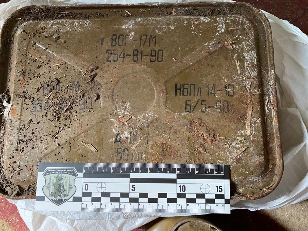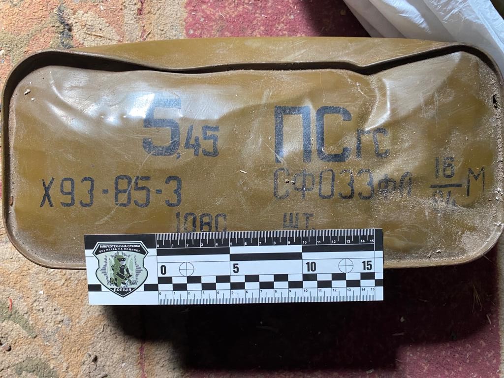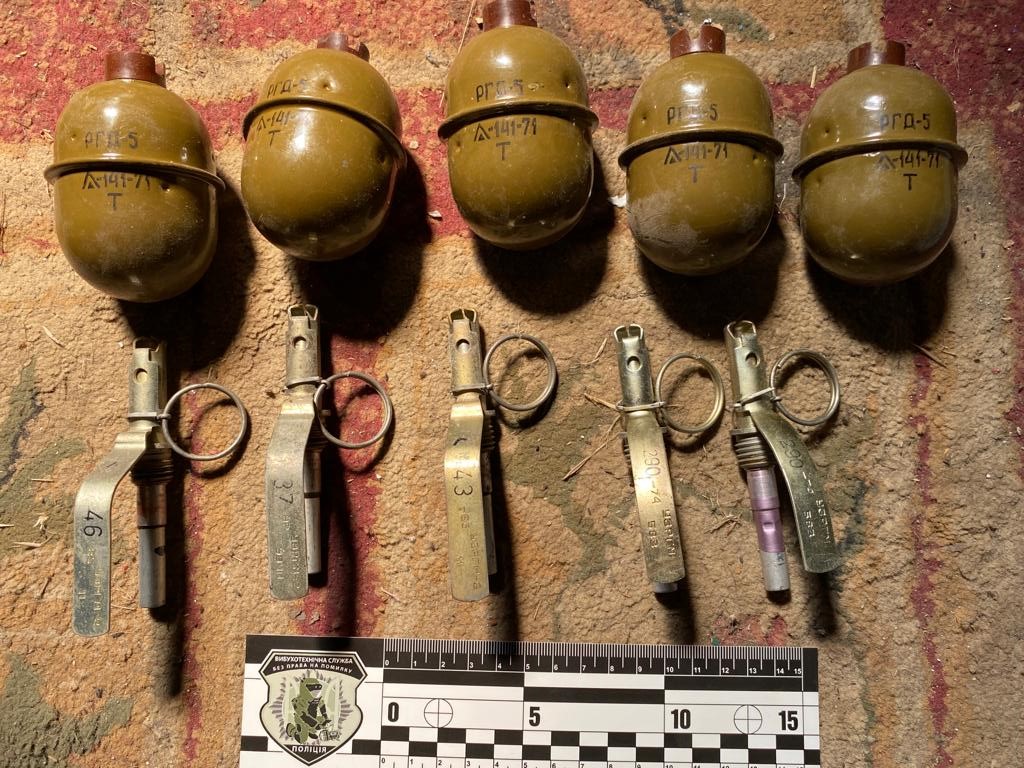 Також у домоволодінні громадянина був проведений санкціонований обшук. Під час огляду приміщень правоохоронці виявили та вилучили 5 корпусів ручної осколкової гранати РГД-5 та запали до них, скриньку з майже 1100 набоями калібром 5.45 мм та ящик із 60 гранатами ВОГ-17м до підствольного гранатомету. За словами правопорушника, зброю та боєприпаси він відшукував на територіях, де під час тимчасової окупації розташовувалися оборонні позиції військових рф.