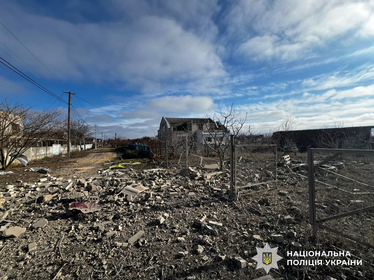У Херсонському районі поліція зафіксувала пошкодження 28 об’єктів: 10 приватних та 2 багатоповерхових будинків, ліній електропередач та електроопор, СТО, 4 автомобілів, лікарні, об’єкту критичної інфраструктури, дитячого садочка та навчального закладу, овочевого складу та боксу для зберігання автотранспорту.