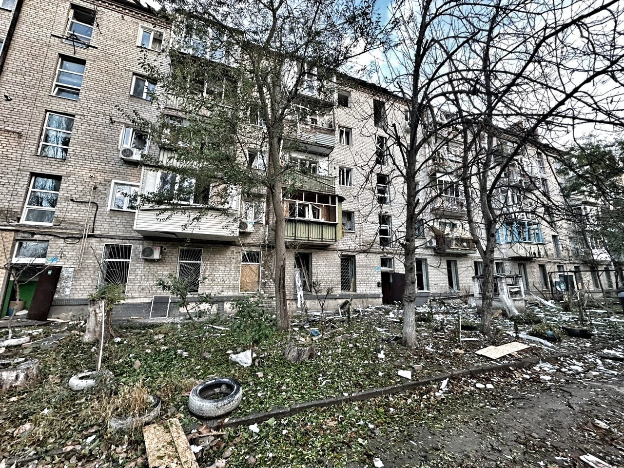 Херсон та його передмістя російська армія обстрілювала з різного виду озброєння. Через ворожі снаряди у багатоповерхових будинках пошкоджені вікна та балконні рами, понівечені автівки та дорожнє полотно.