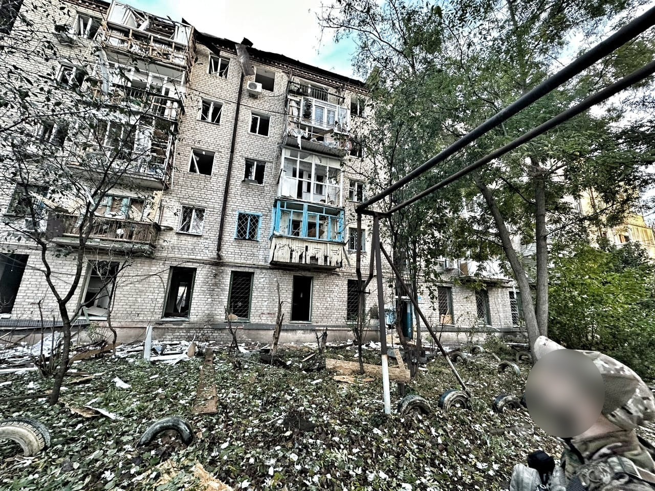 Ввечері російські війська здійснили ракетний удар по центральній частині міста, поціливши по житловій забудові. Внаслідок потужного вибуху в п’ятиповерховому будинку зруйновано дах та значно пошкоджено квартири, у навколишніх багатоповерхівках та адміністративній будівлі повибивало вікна.
