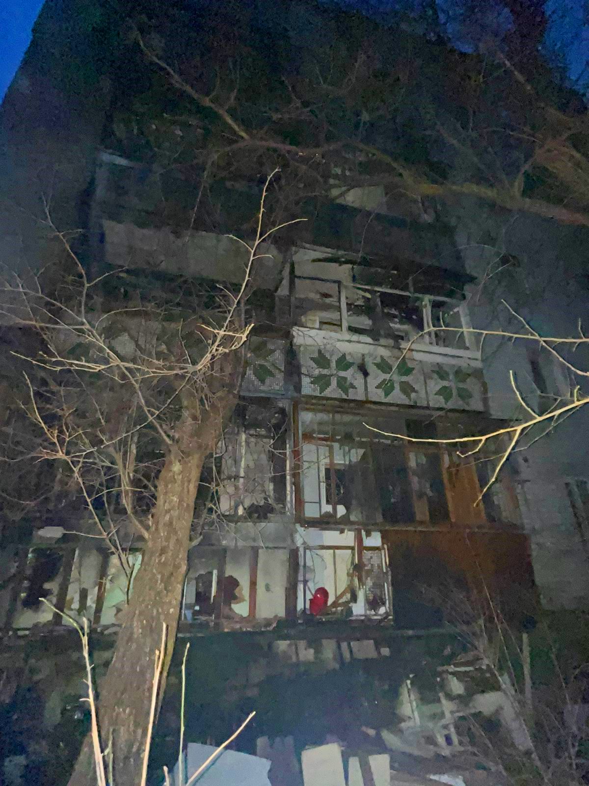 У Дніпровському районі пошкоджено комунальну установу, спортивну залу навчального закладу, у п’ятиповерховому будинку сталося займання квартир та постраждала 91-річна жінка, у якої діагностували отруєння продуктами горіння.